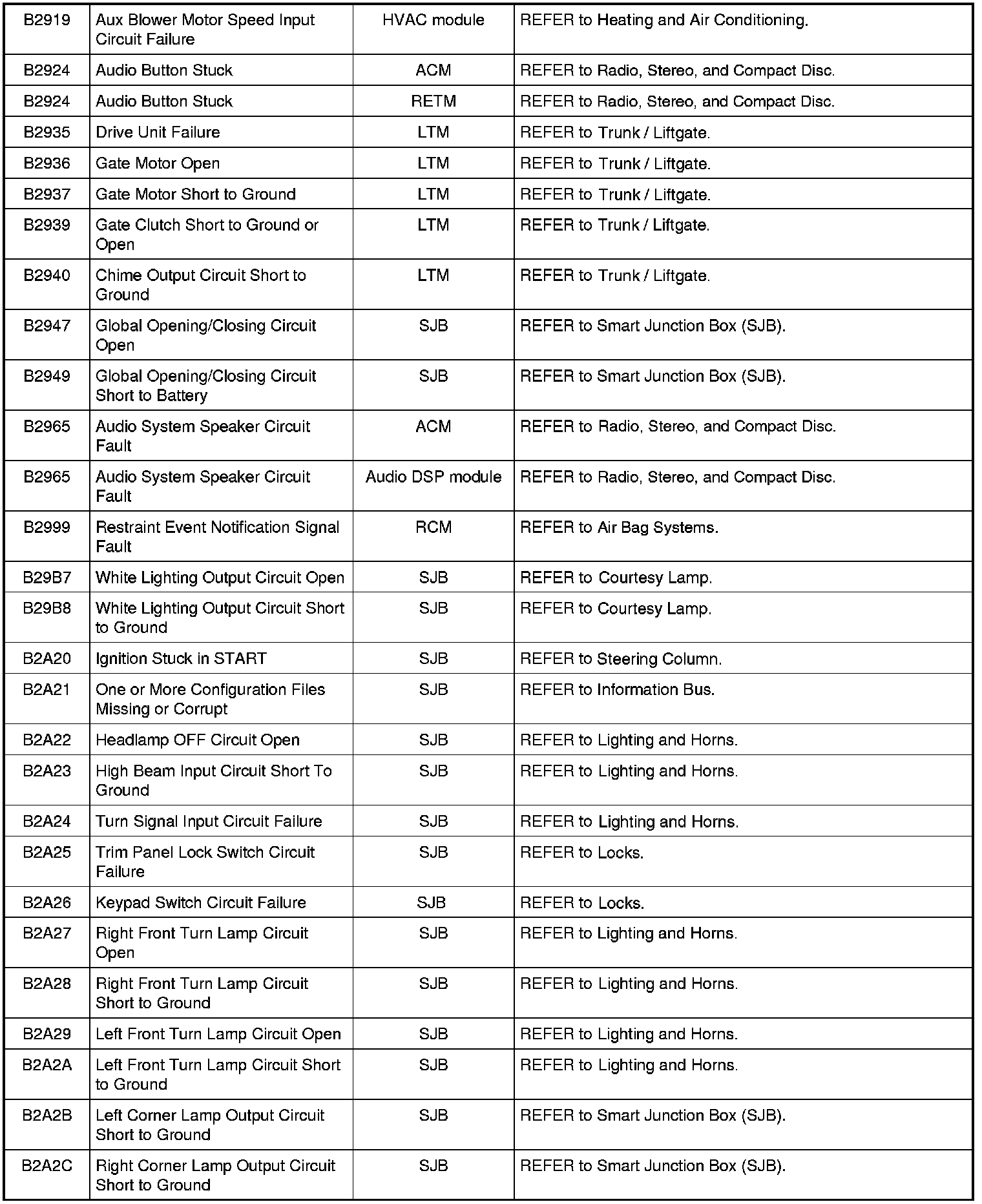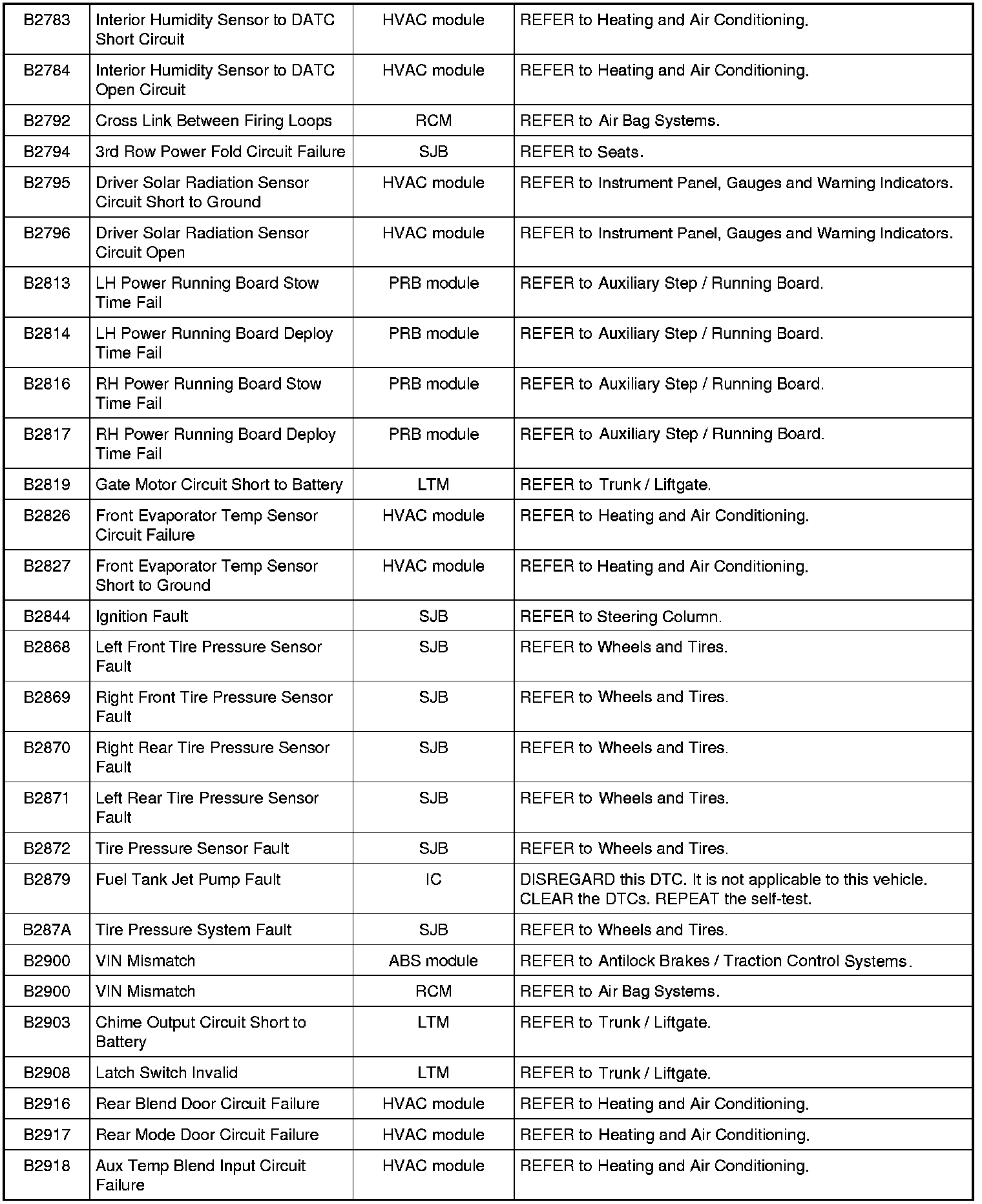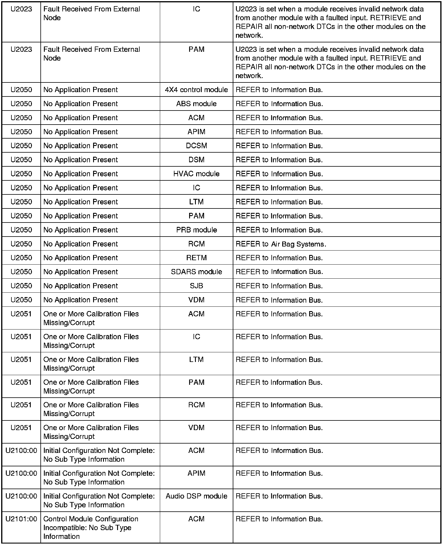 NOTE: Some of these modules utilize a 5-character DTC followed by a 2-character failure-type code. The failure-type code provides information about specific fault conditions such as opens, or shorts to ground. Continuous memory DTCs have an additional 2-character DTC status code suffix to assist in determining DTC history.