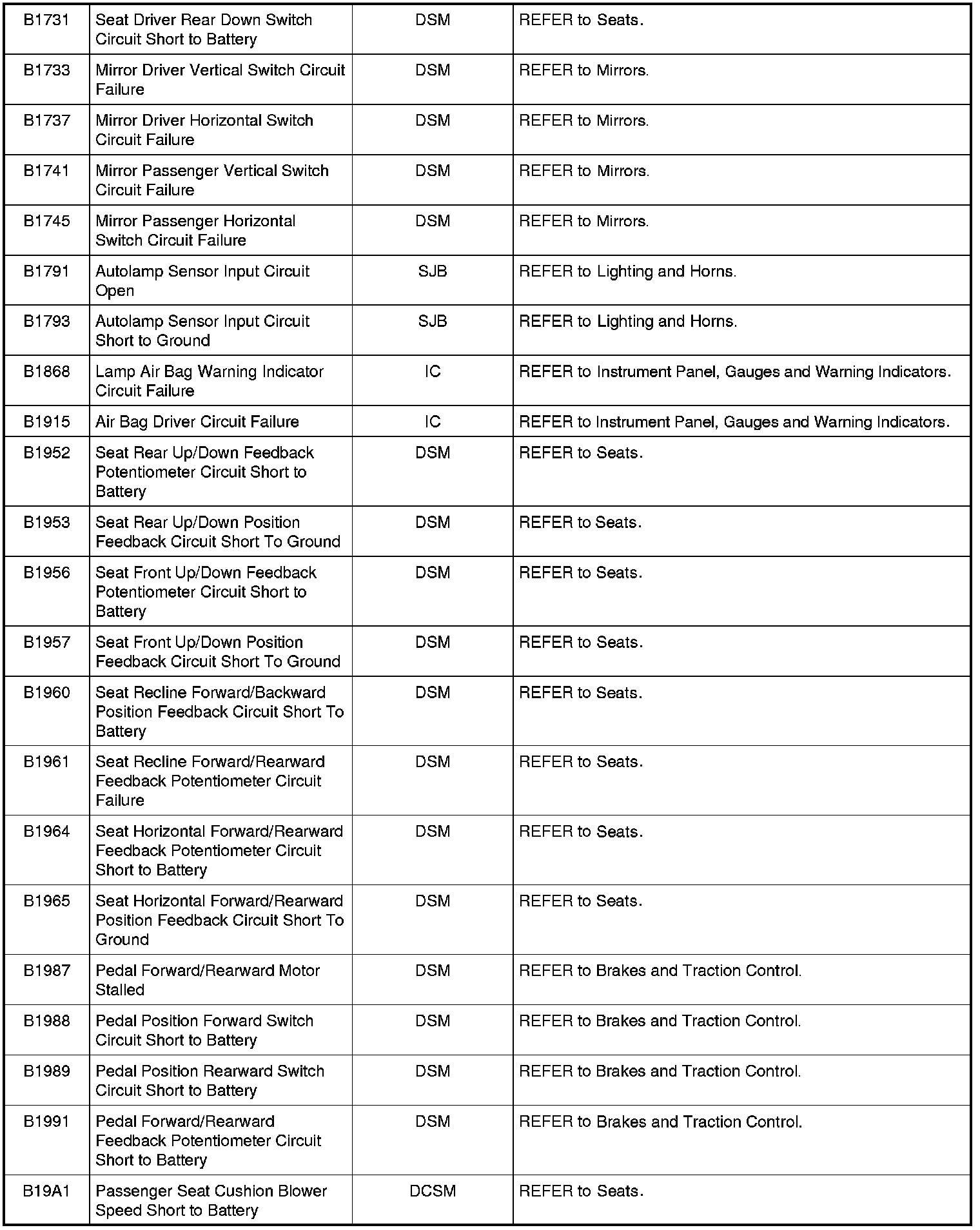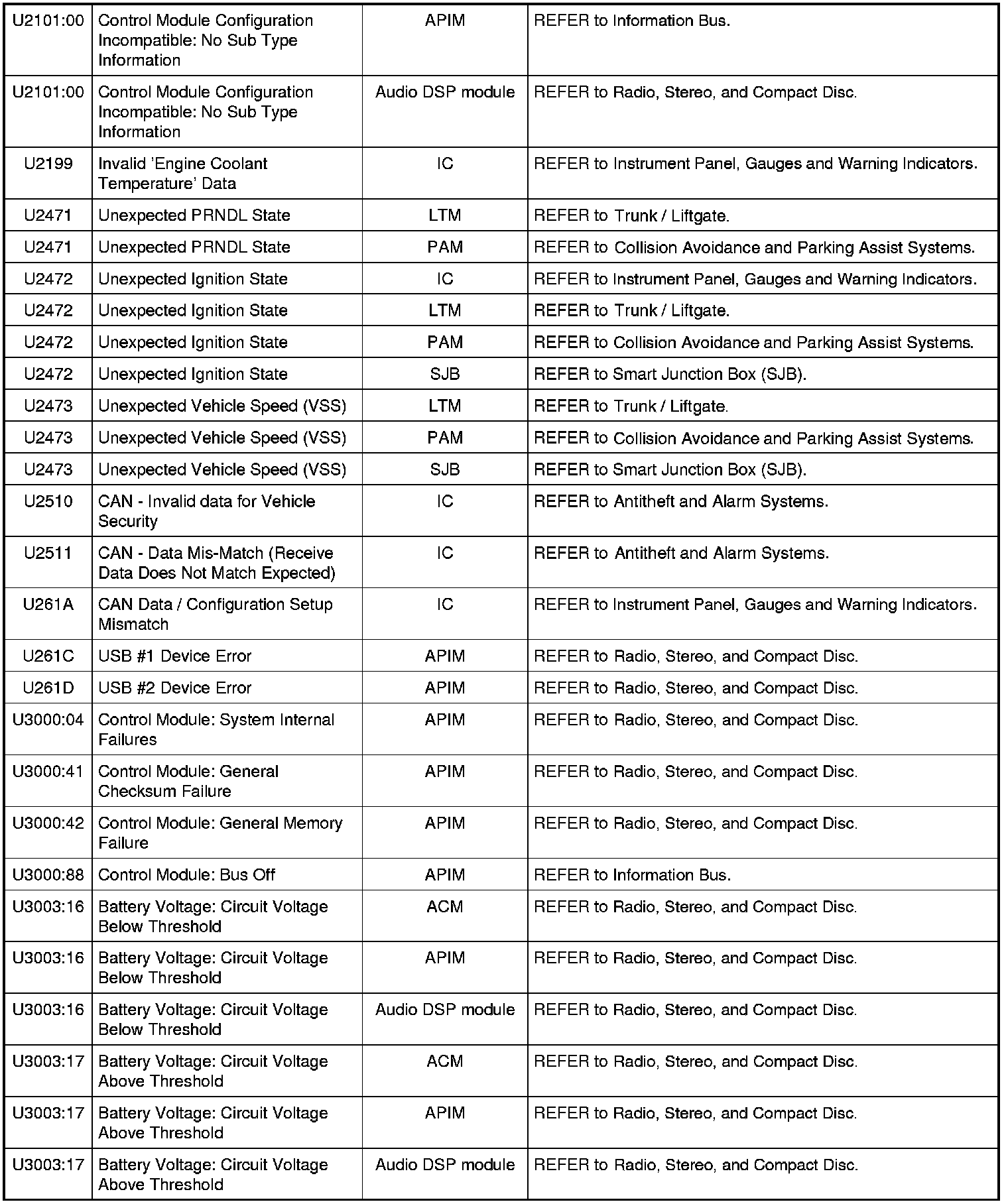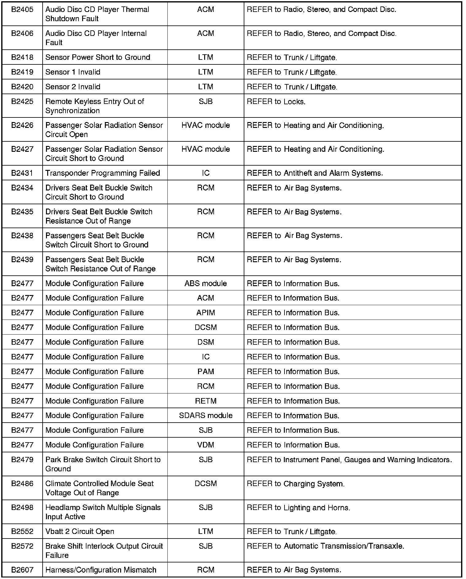 NOTE: Some of these modules utilize a 5-character DTC followed by a 2-character failure-type code. The failure-type code provides information about specific fault conditions such as opens, or shorts to ground. Continuous memory DTCs have an additional 2-character DTC status code suffix to assist in determining DTC history.