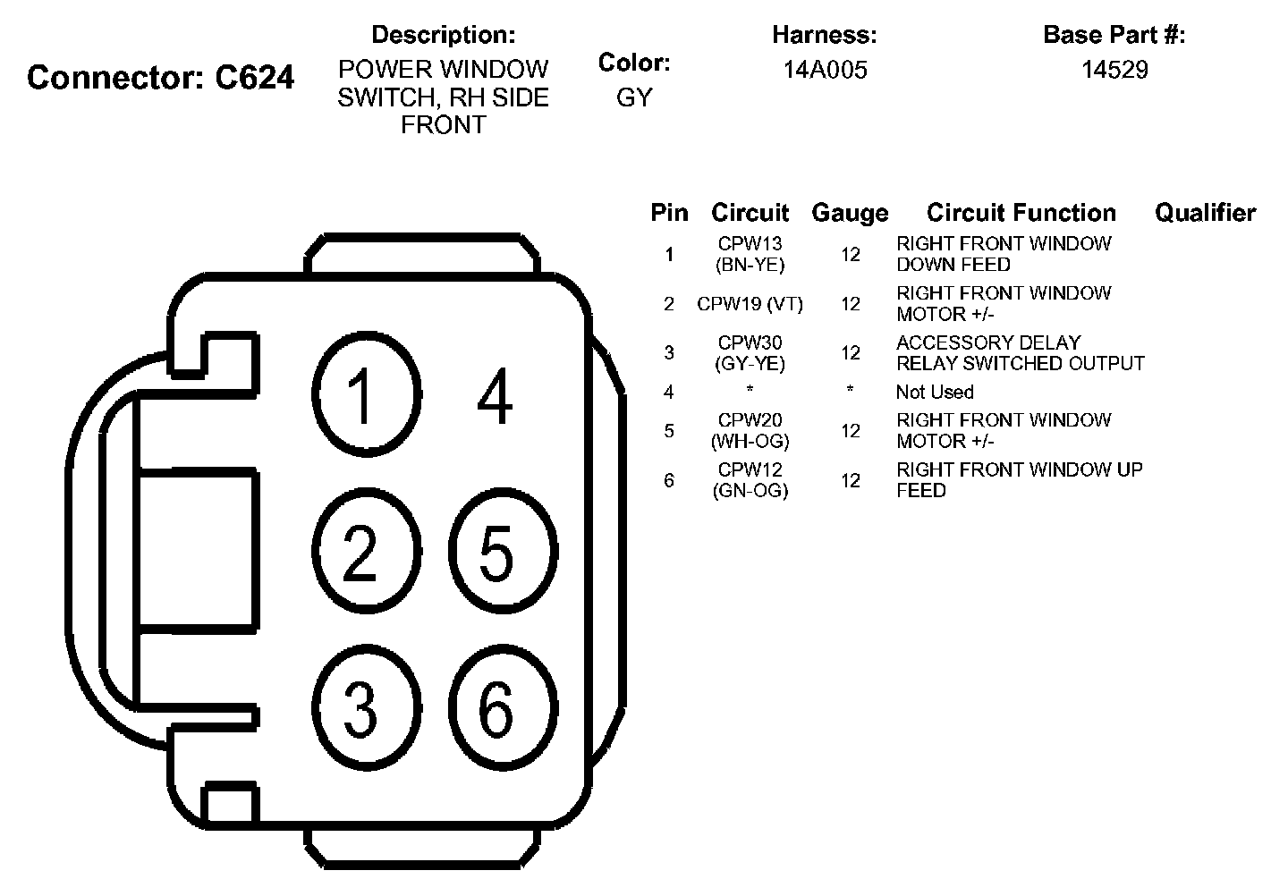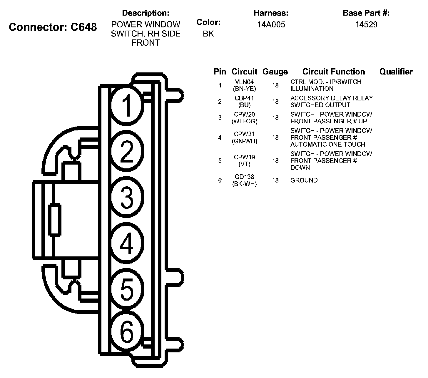 Power Window Switch, RH Side Front