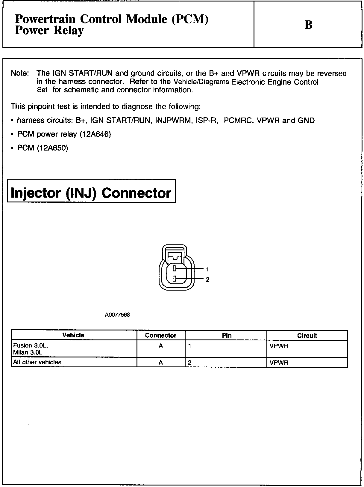 PINPOINT TEST B: POWERTRAIN CONTROL MODULE (PCM) POWER RELAY