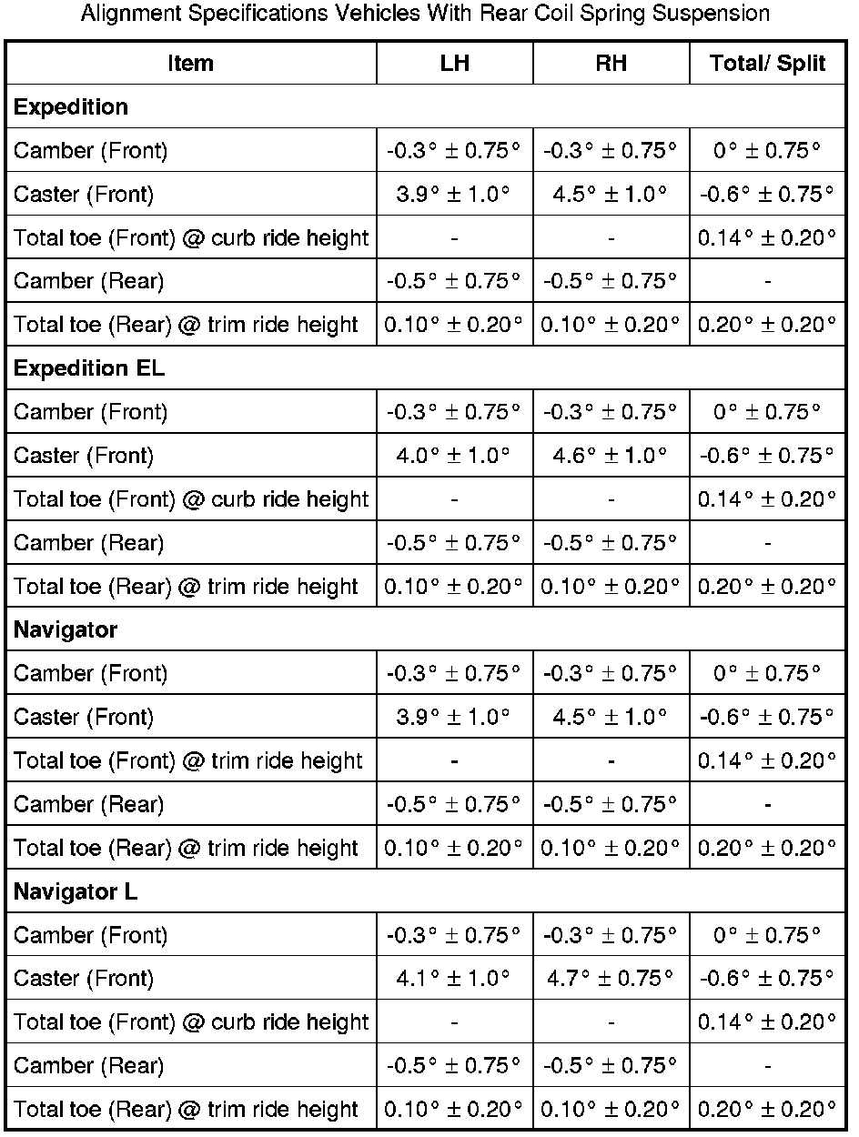 Alignment Specifications Vehicles With Rear Coil Spring Suspension: