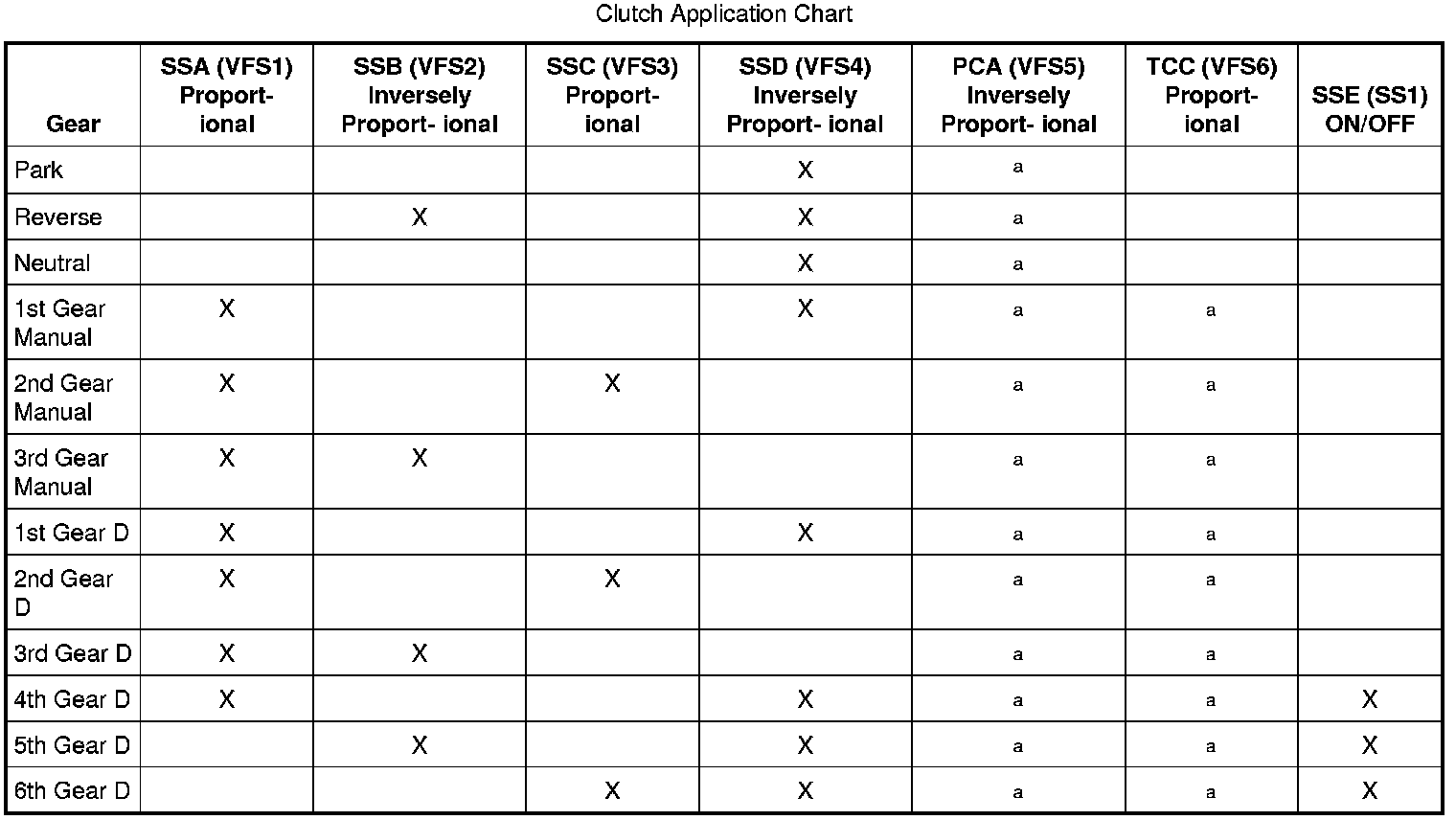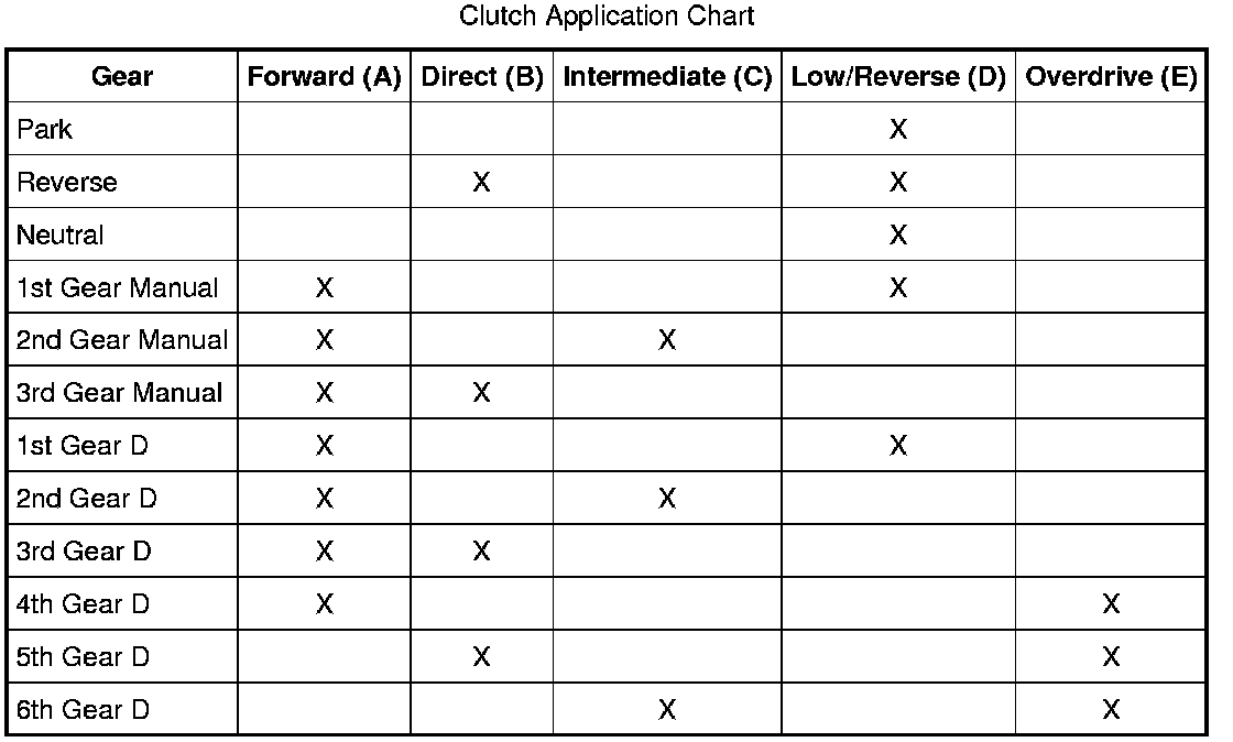 Clutch Application Chart: