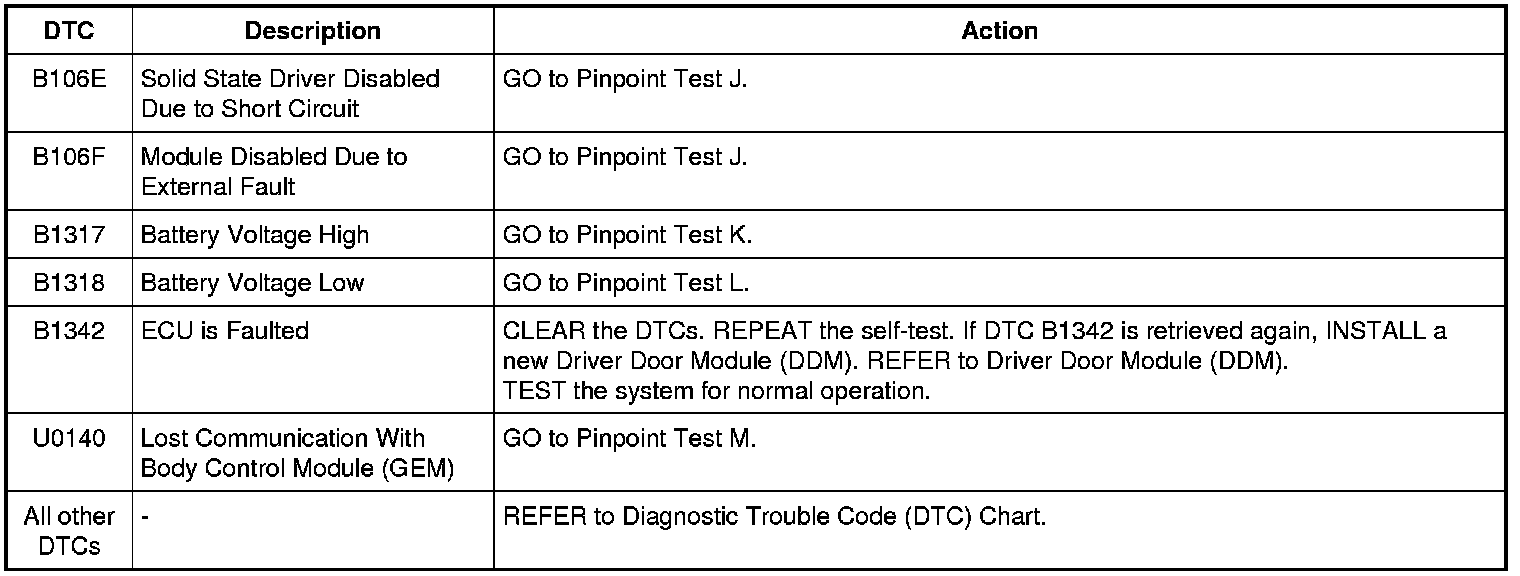 Driver Door Module (DDM) DTC Chart