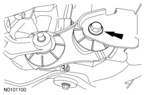 17. Remove the front engine roll restrictor bolt.
