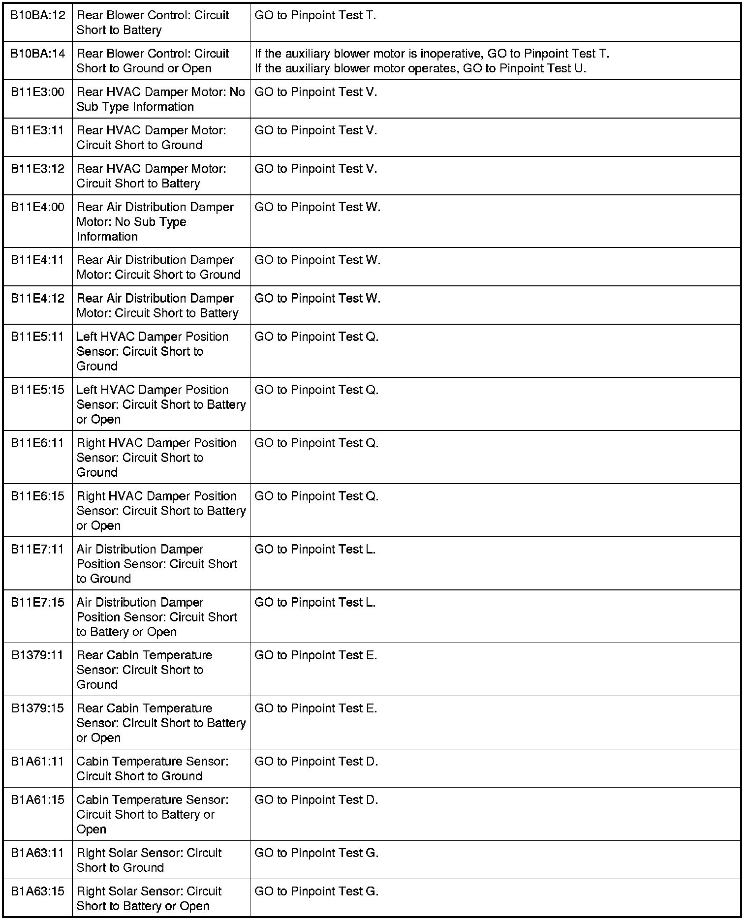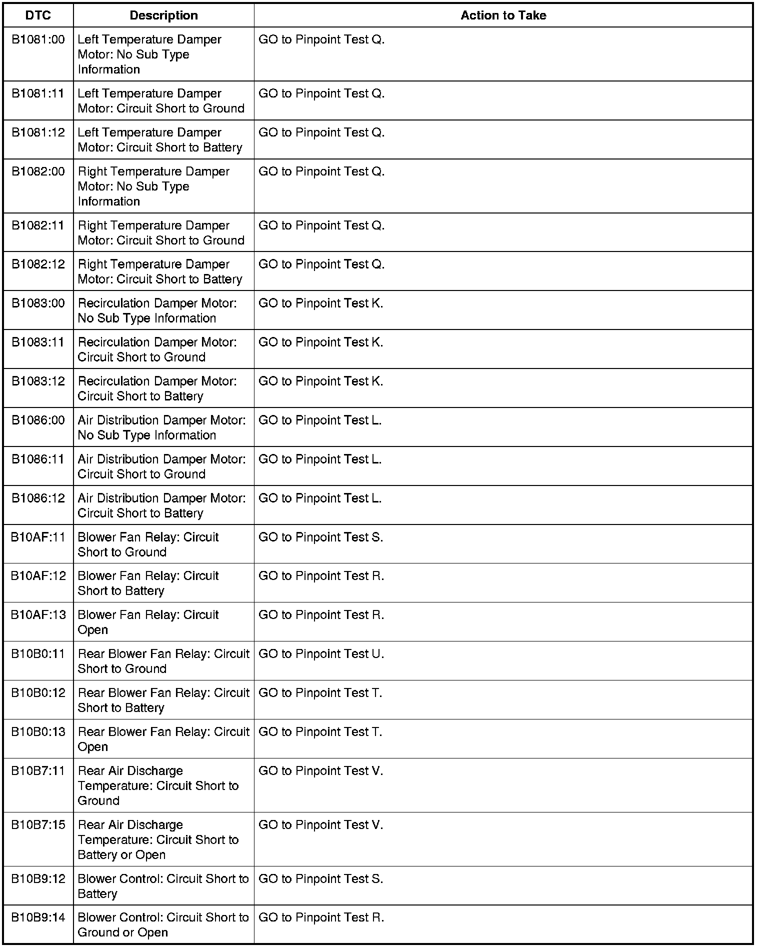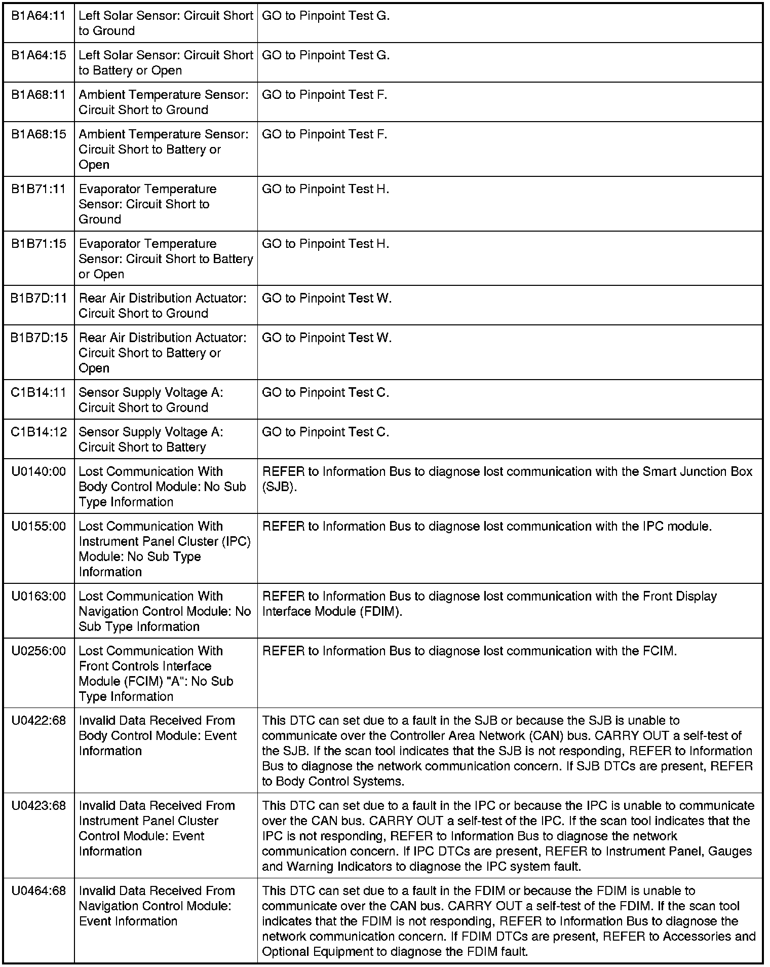 HVAC Module DTC Chart