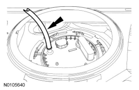 Carefully lift the FP module out of the fuel tank allowing access and disconnect the internal fuel tube-to-FP module quick connect coupling. For additional information, refer to Fuel Delivery and Air Induction.