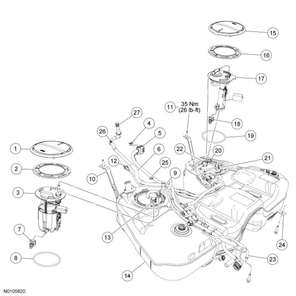 Fuel Tank and Filler Pipe - Exploded View