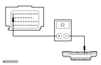 - Measure the resistance between the RCM C310b-10, circuit VDB04 (WH/BU), harness side and the Data Link Connector (DLC) C251-6, circuit VDB04 (WH/BU), harness side.