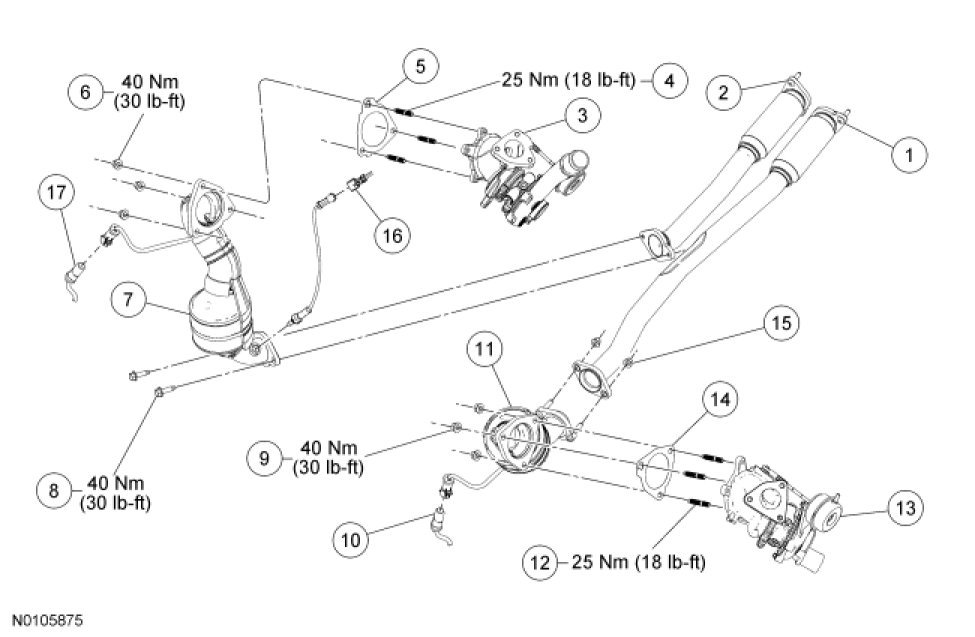 3.5L Gasoline Turbocharged Direct Injection (GTDI) LH and RH Catalytic Converters and Exhaust Flexible Pipes