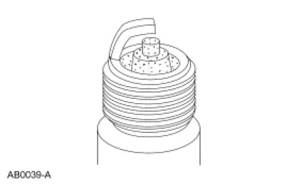 3. Inspect for carbon fouling. Look for black, dry, fluffy carbon deposits on the insulator tips, exposed shell surfaces and electrodes, caused by a spark plug with an incorrect heat range, dirty air cleaner, too rich a fuel mixture or excessive idling.