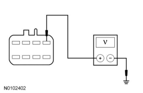 - Measure the voltage between the HCM-2 inline C913-A, circuit CBP35 (YE/GY), harness (female) side and ground.