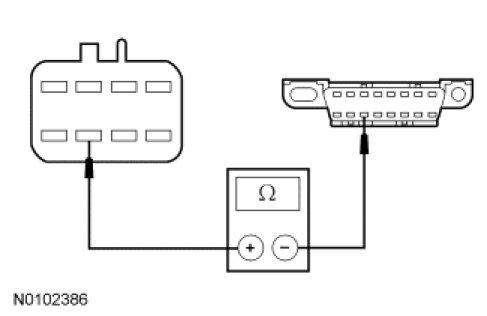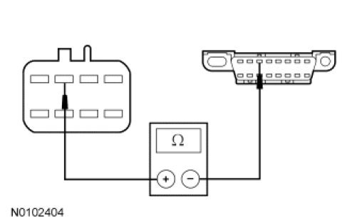 - Measure the resistance between the HCM-2 inline C913-C, circuit VDB06 (GY/OG), harness (female) side and the DLC C251-3, circuit VDB06 (GY/OG), harness side.
