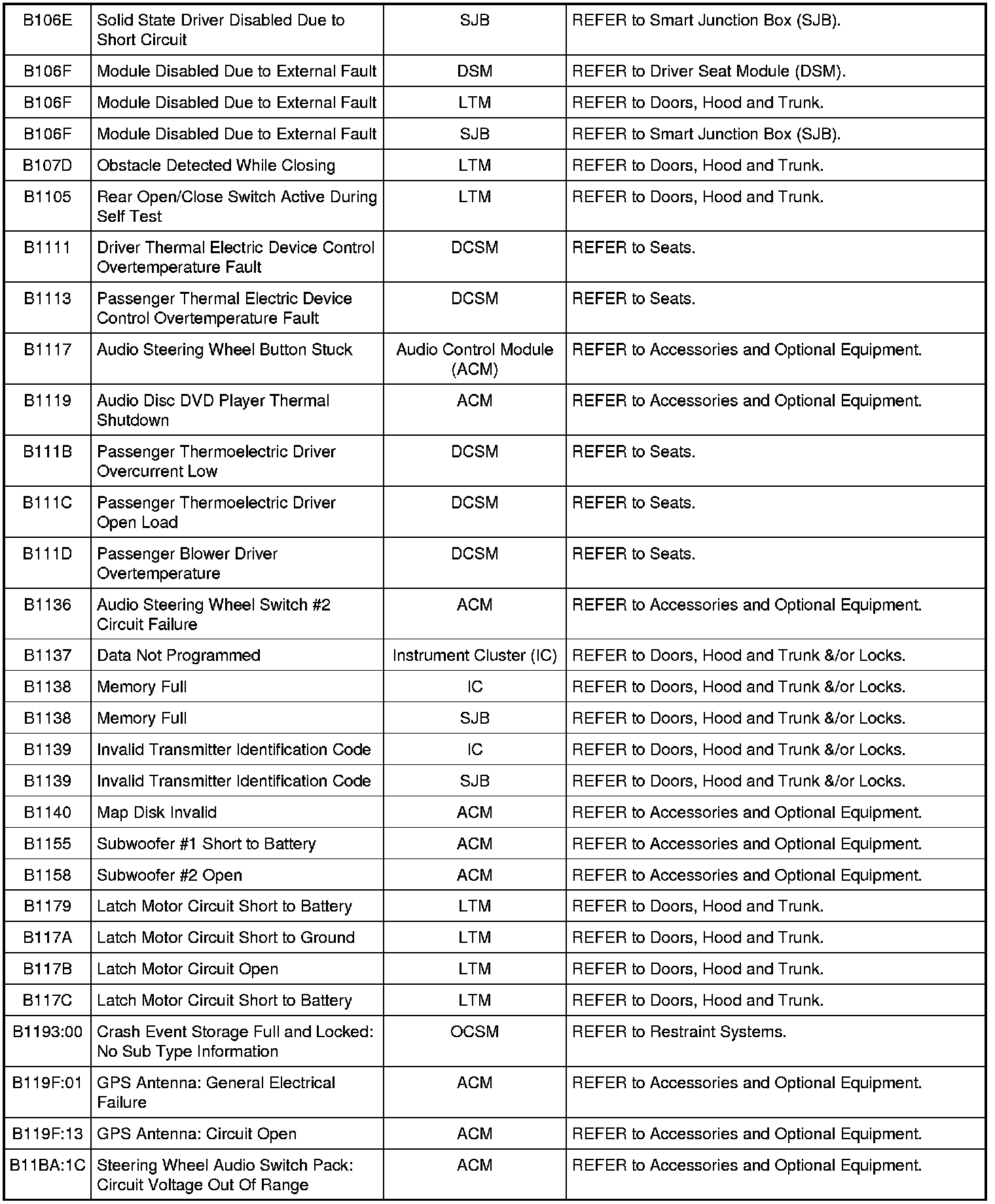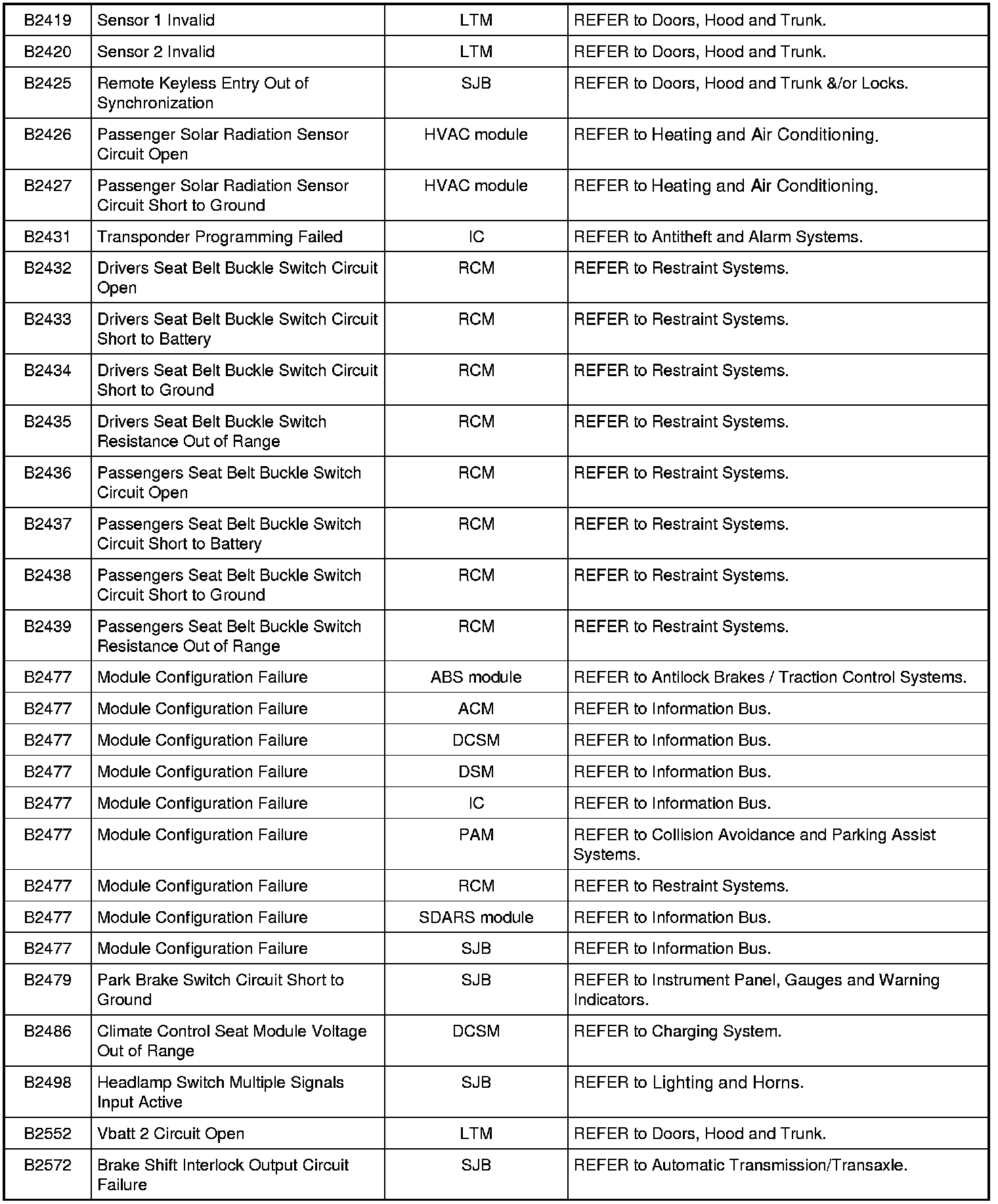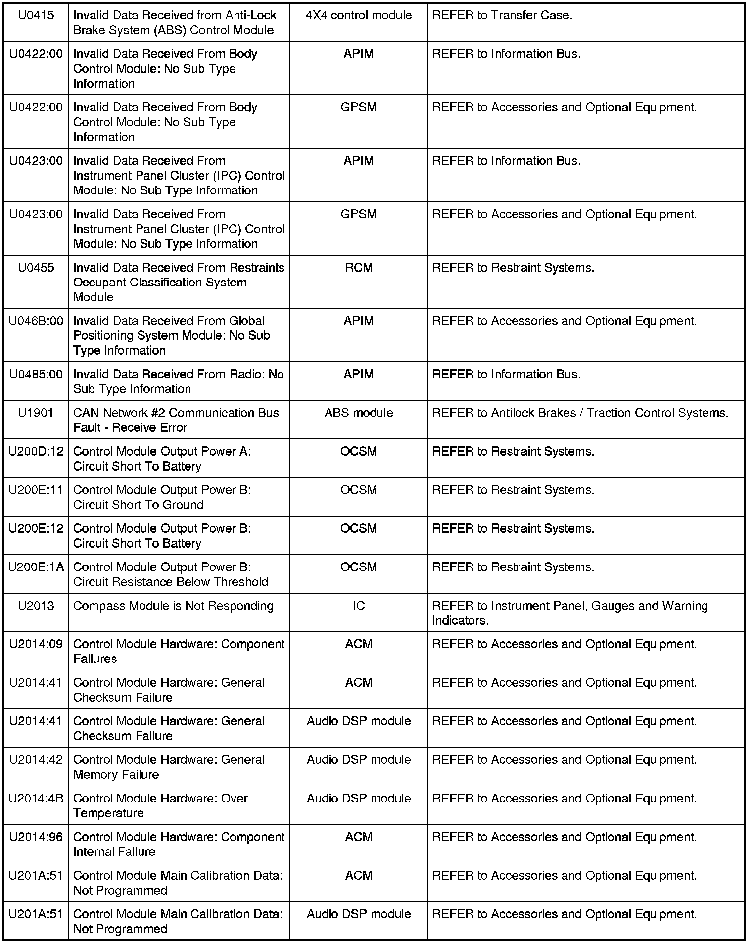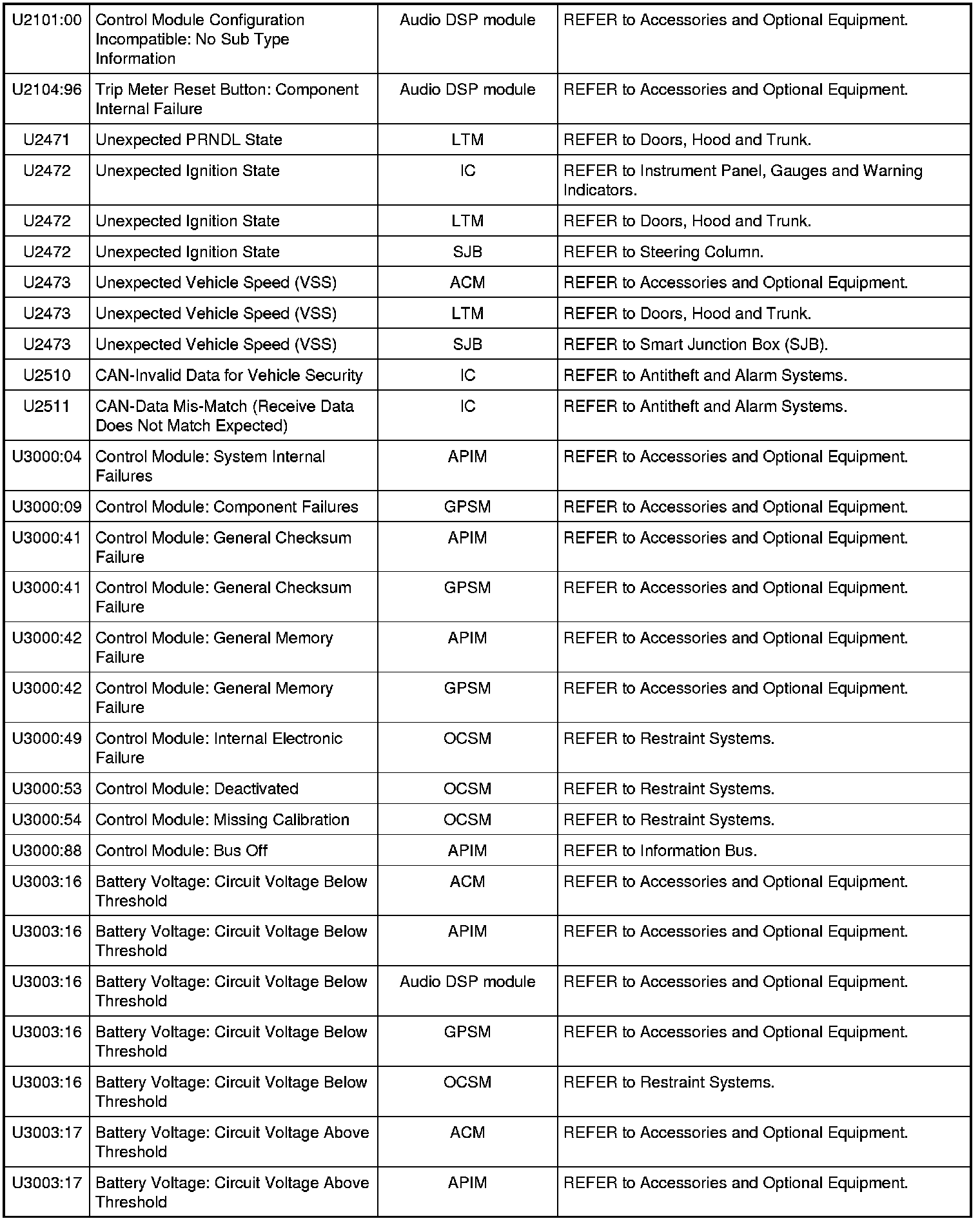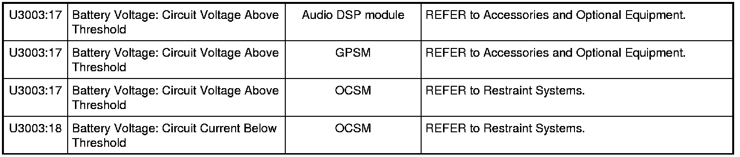 NOTE: Some of these modules utilize a 5-character DTC followed by a 2-character failure-type code. The failure-type code provides information about specific fault conditions such as opens, or shorts to ground. Continuous memory DTCs have an additional 2-character DTC status code suffix to assist in determining DTC history.