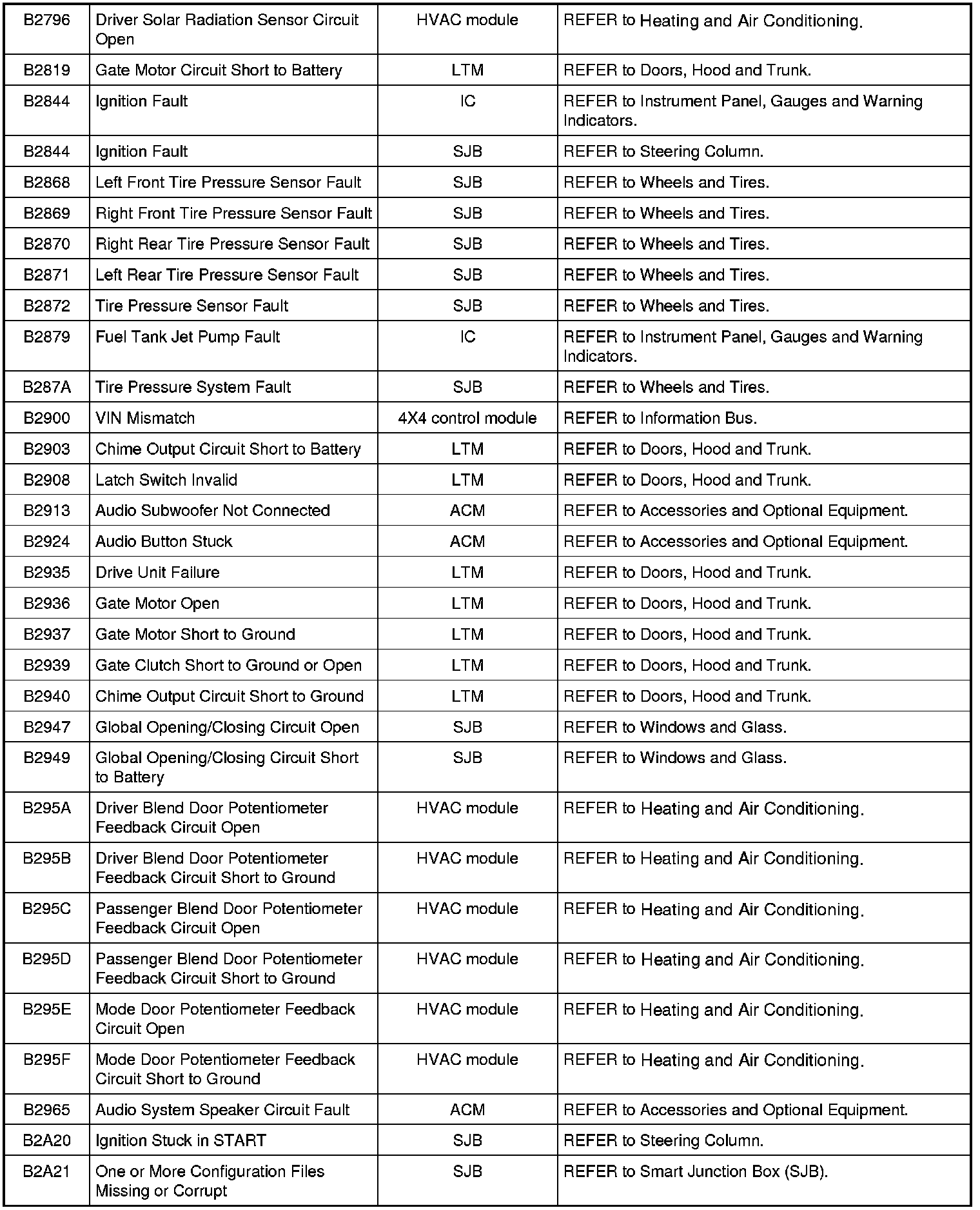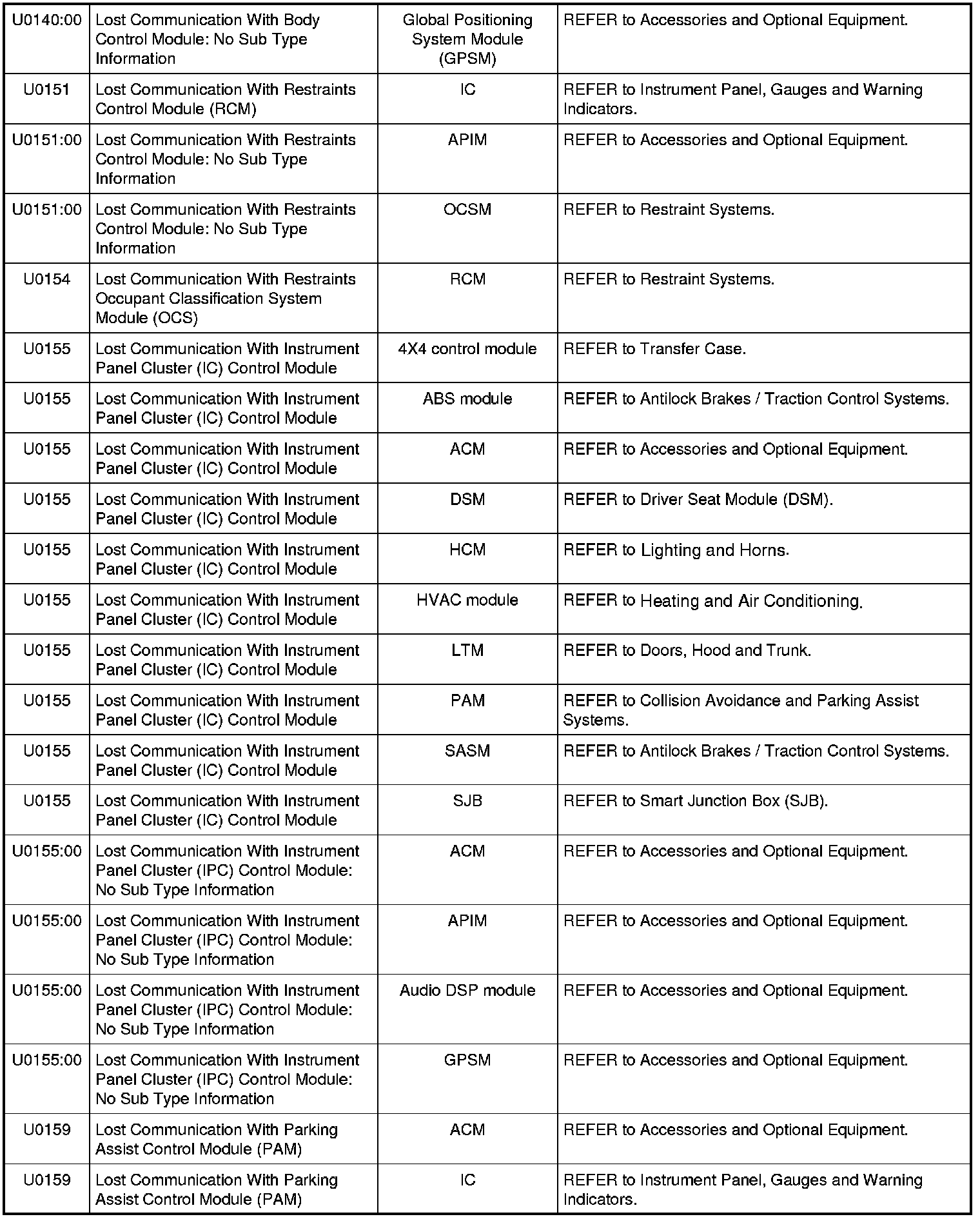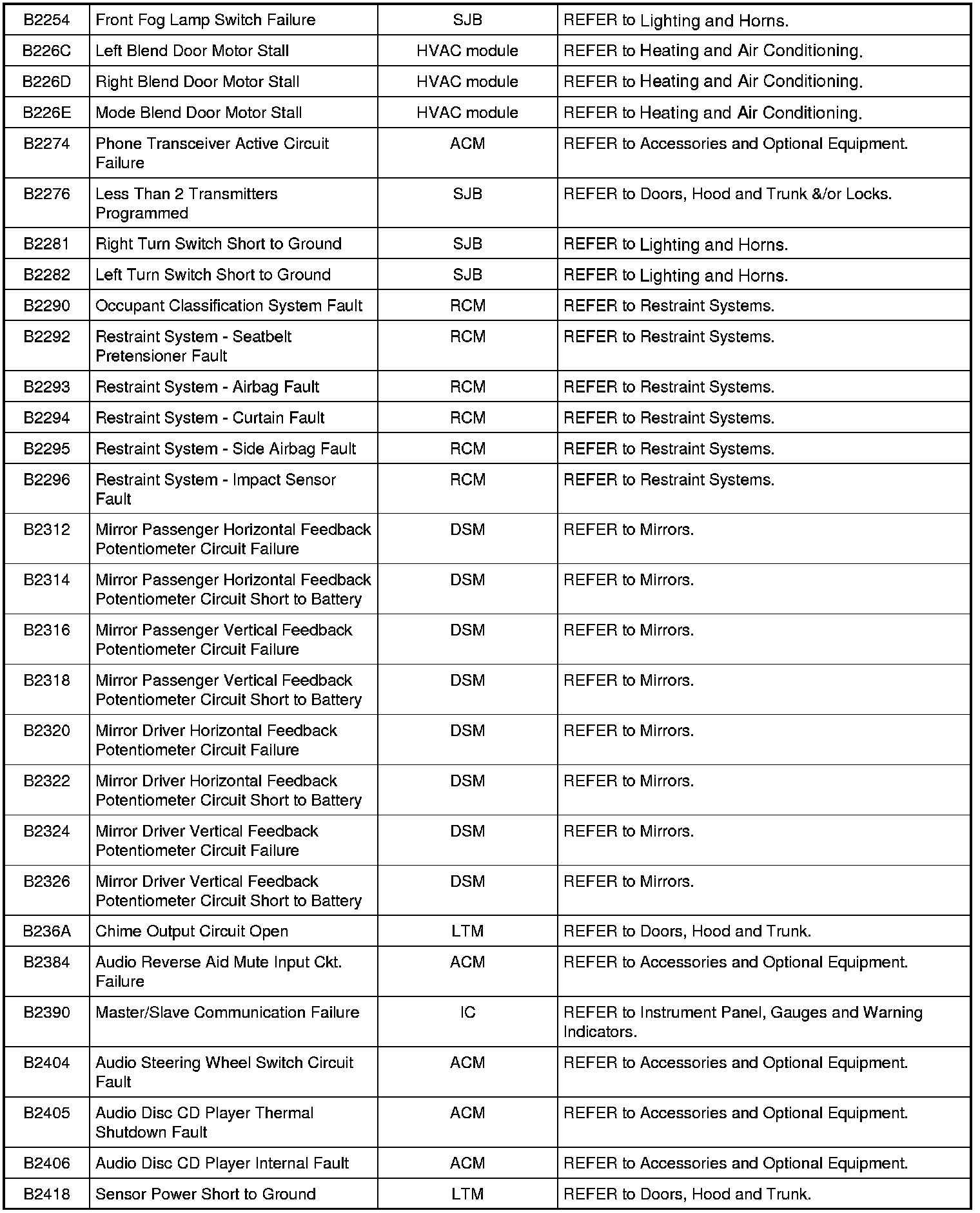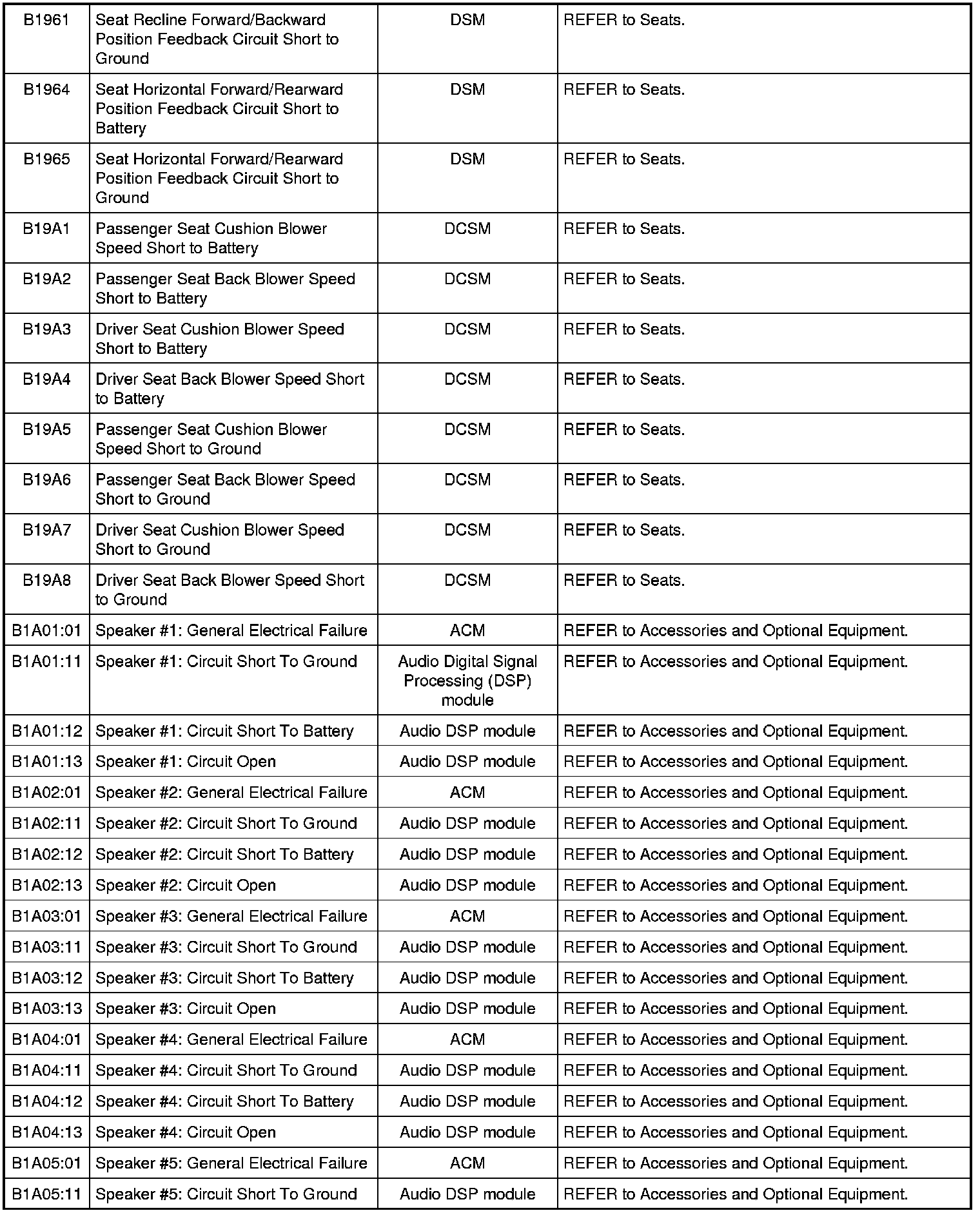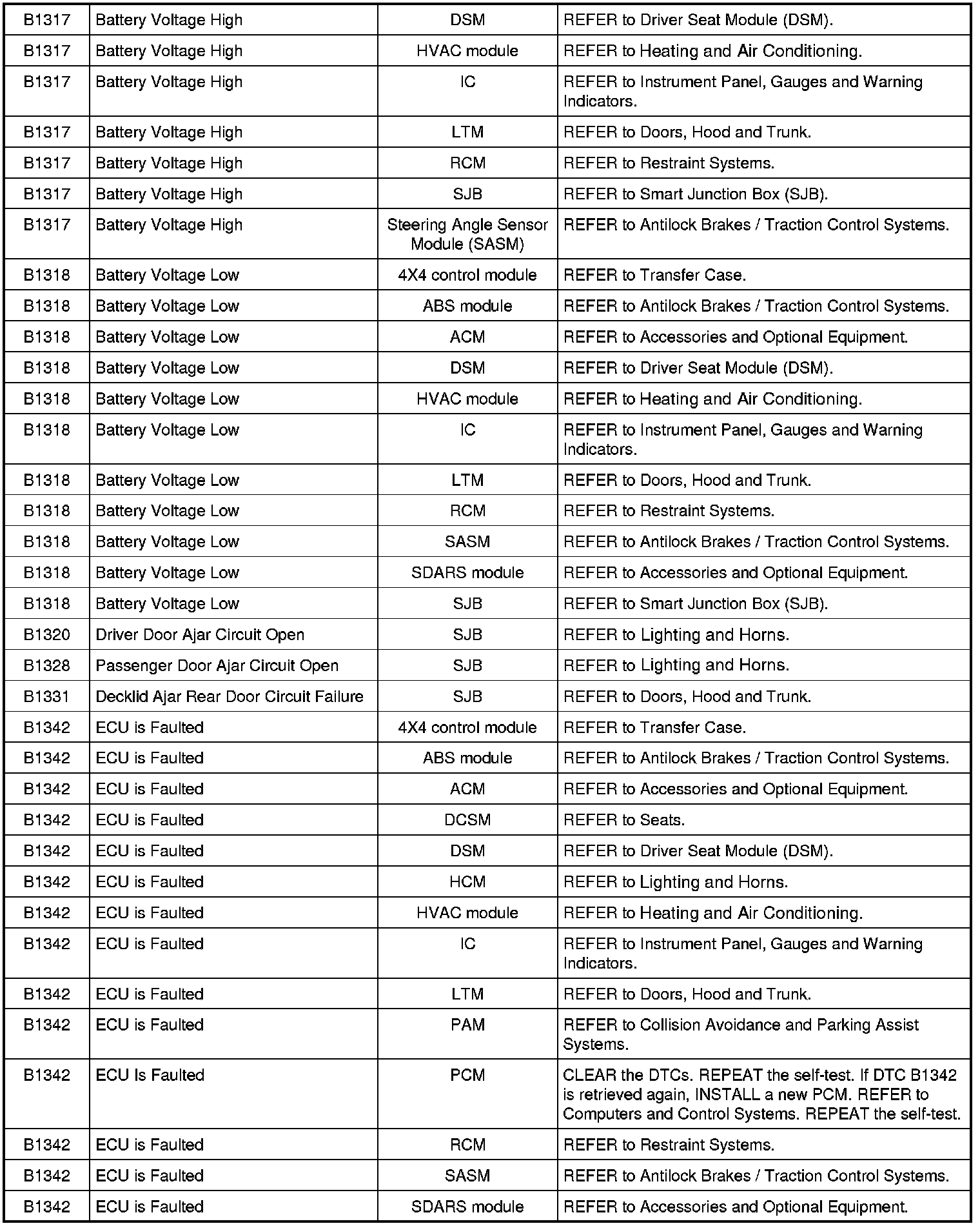NOTE: Some of these modules utilize a 5-character DTC followed by a 2-character failure-type code. The failure-type code provides information about specific fault conditions such as opens, or shorts to ground. Continuous memory DTCs have an additional 2-character DTC status code suffix to assist in determining DTC history.