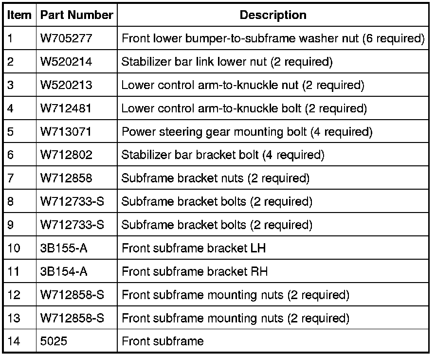 NOTICE: Suspension and subframe fasteners are critical parts because they affect performance of vital parts and systems and their failure may result in major service expense. A new part with the same part number must be installed if installation becomes necessary. Do not use a replacement part of lesser quality or substitute design. Torque values must be used as specified during reassembly to make sure of correct retention of these parts.