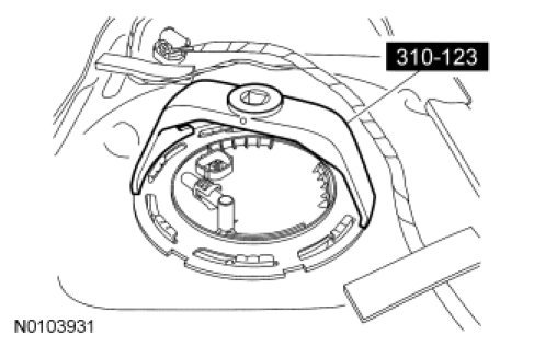 9. NOTE: Inspect the mating surfaces of the FP module flange and the fuel tank O-ring seal contact surfaces. Do not polish or adjust the O-ring seal contact area of the fuel tank flange or the fuel tank. Install a new FP module or fuel tank if the O-ring seal contact area is bent, scratched or corroded.