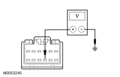 - Measure the voltage between the SDARS module C4344-9, circuit CBP13 (GY/BN), harness side and ground.