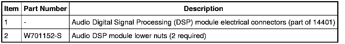 6. NOTICE: The audio Digital Signal Processing (DSP) module is heavy. Be sure to support the amplifier during removal, or damage to the vehicle may occur.