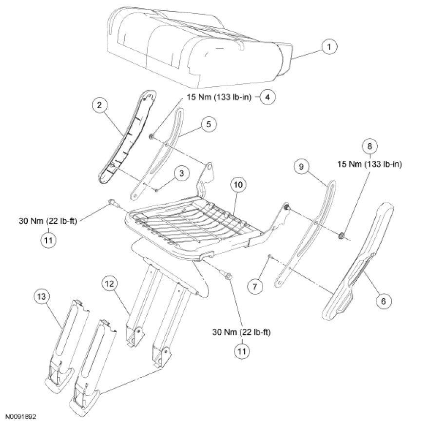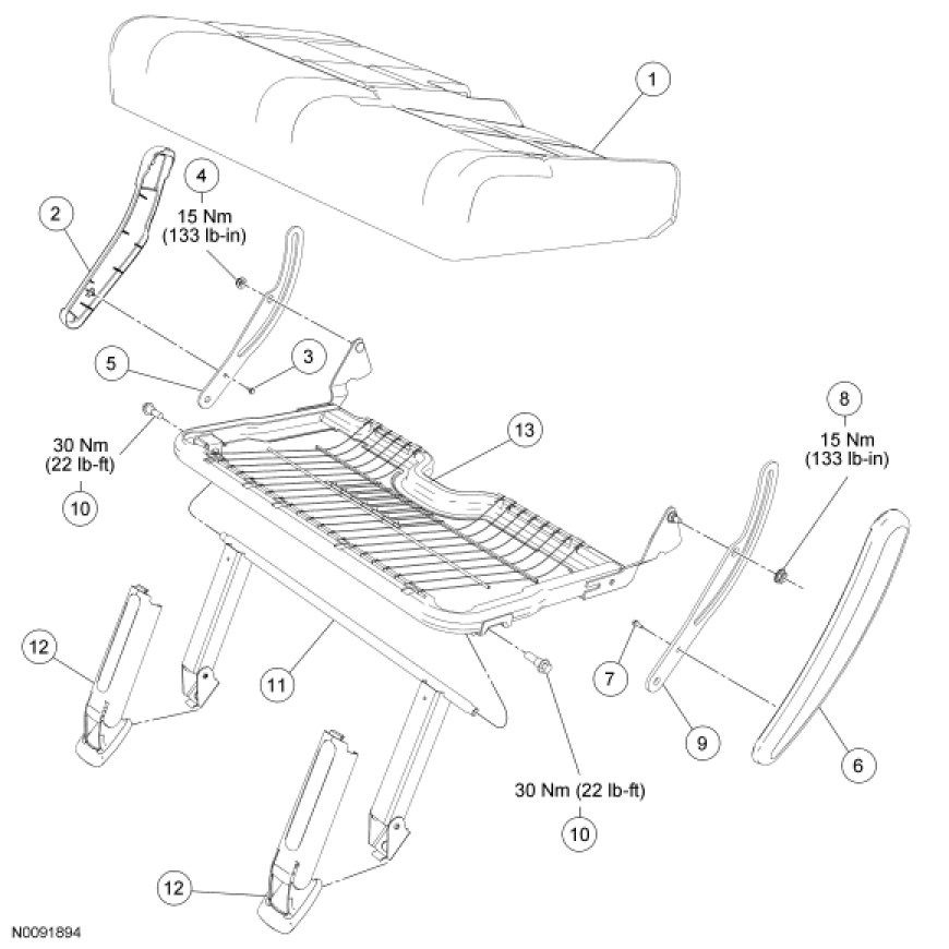 Seat - Exploded View, Third Row