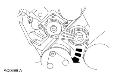 2. Rotate the accessory drive belt tensioner clockwise and detach the accessory drive belt from the A/C compressor pulley.