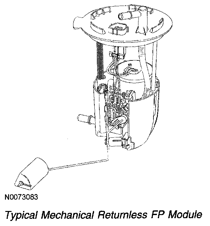 The FP module contains the fuel pump and sender assembly. The fuel pump is located inside the FP module reservoir and supplies fuel through the FP module manifold to the engine and FP module jet pump. The jet pump continuously refills the reservoir with fuel, and a check valve located in the manifold outlet maintains system pressure when the fuel pump is not energized. A flapper valve located in the bottom of the reservoir allows fuel to enter the reservoir and prime the fuel pump during the initial fill.