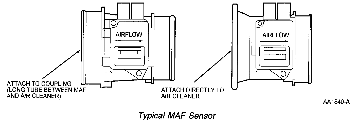 Diagram Of Air Flow Through Throttle Body Contacting MAF Sensor Hot And Cold Wire (and IAT Sensor Wire Where Applicable) Terminals: