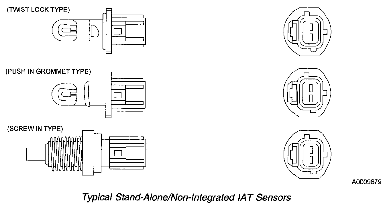 Currently there are 2 types of IAT sensors used, a stand-alone/non-integrated type and an integrated type. Both types function the same, however the integrated type is incorporated into the mass air flow (MAF) sensor instead of being a stand-alone sensor.