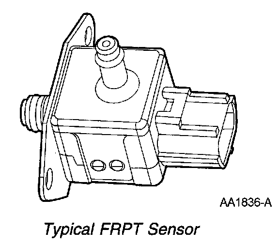 The FRPT sensor measures the pressure and temperature of the fuel in the fuel rail and sends these signals to the PCM. The sensor uses the intake manifold vacuum as a reference to determine the pressure difference between the fuel rail and the intake manifold. The relationship between fuel pressure and fuel temperature is used to determine the possible presence of fuel vapor in the fuel rail.