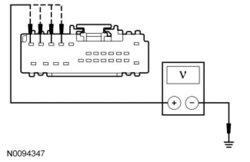 - Measure the voltage between the audio DSP module, harness side and ground as follows: