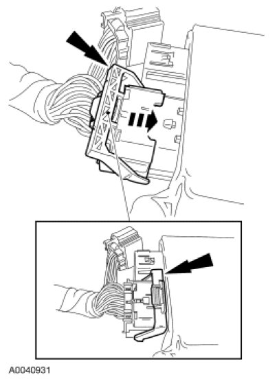 - NOTICE: Do not push on the connector so that the lever pivots and seats itself. Light pressure is needed to get the connector into position on the Restraints Control Module (RCM) before using the lever to fully seat the connector.