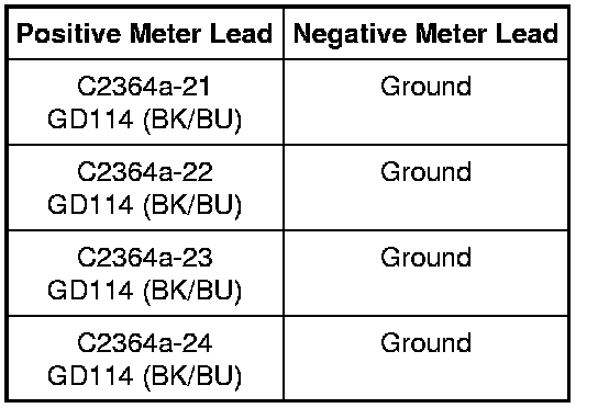 - Measure the resistance between the audio DSP module C2364a, harness side and ground as follows: