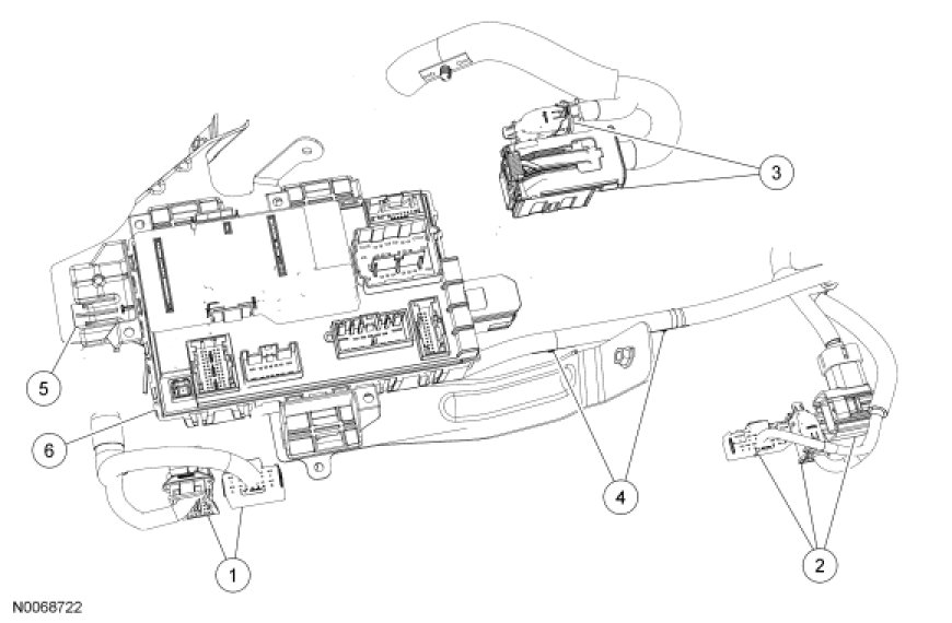 NOTE: Prior to the replacement of the module, it is necessary to upload the module configuration information to the scan tool. This information must be downloaded into the new module after installation. For additional information, refer to Module Configuration Testing and Inspection. In the event that As-Built data is required (the SJB does not communicate), all Remote Keyless Entry (RKE) devices must be programmed to the new SJB. A minimum of 2 devices are necessary to complete the configuration and turn off the flashing interior lights.