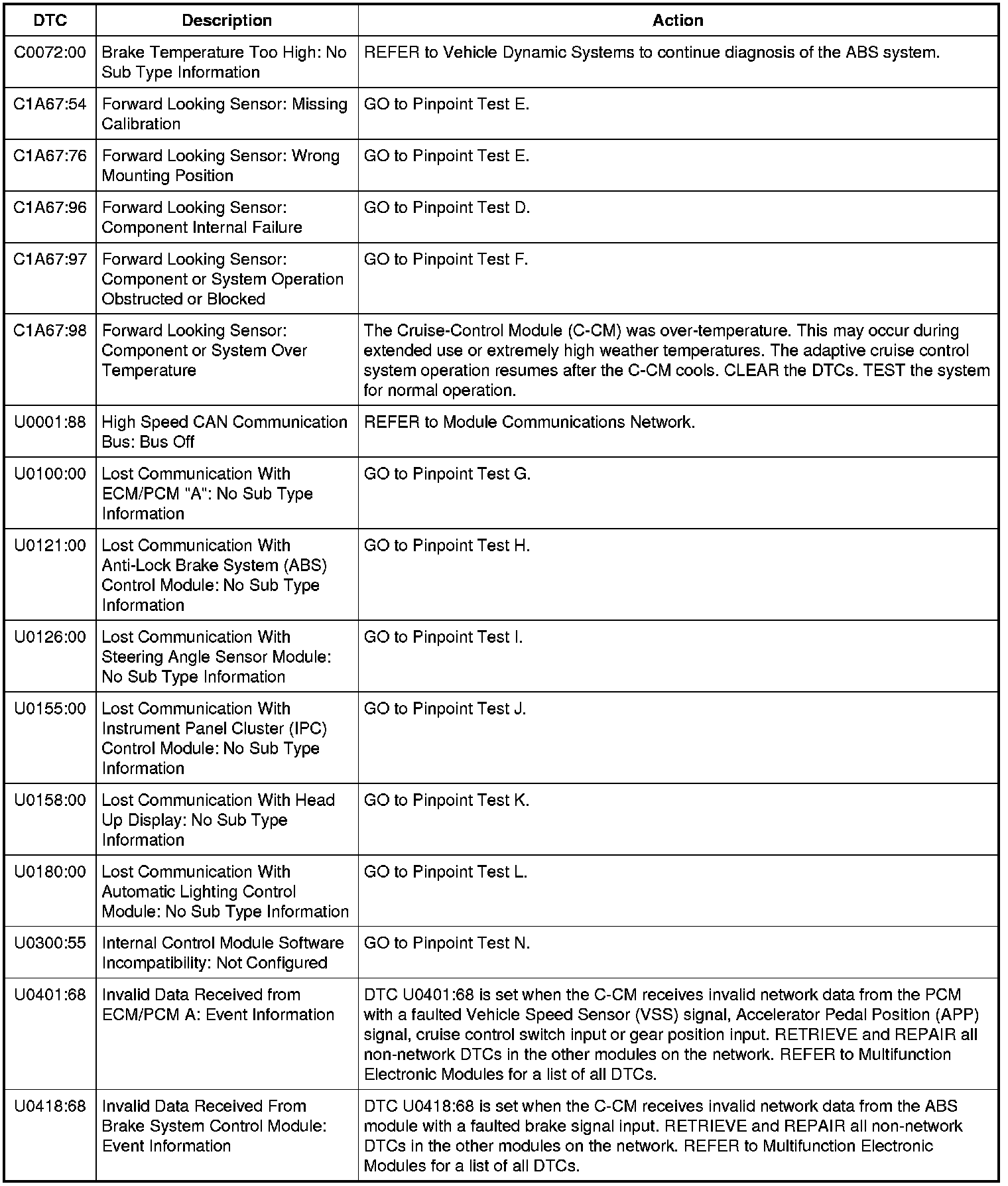 NOTE: This module utilizes a 5-character DTC followed by a 2-character failure-type code. The failure-type code provides information about specific fault conditions such as opens, or shorts to ground. Continuous memory DTCs have an additional 2-character DTC status code suffix to assist in determining DTC history.