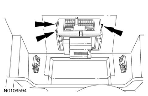 4. Press the 3 refrigerator switch bezel retaining tabs inward and remove the refrigerator switch and bezel from the rear cup holder.