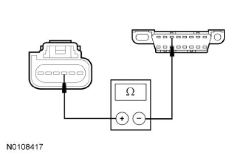 - Measure the resistance between the SOD-R C4229-3, circuit VDB06 (GY/OG), harness side and the Data Link Connector (DLC) C251-3, circuit VDB06 (GY/OG), harness side.
