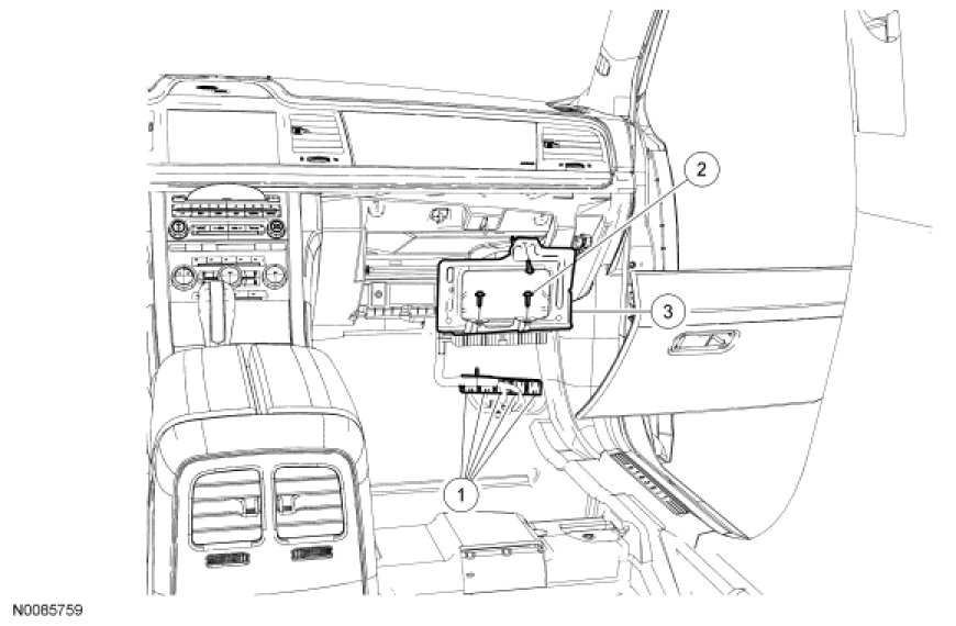 NOTE: Prior to the replacement of the module, it is necessary to upload the module configuration information to the scan tool. This information must be downloaded into the new module after installation. For additional information, refer to Module Configuration Testing and Inspection.
