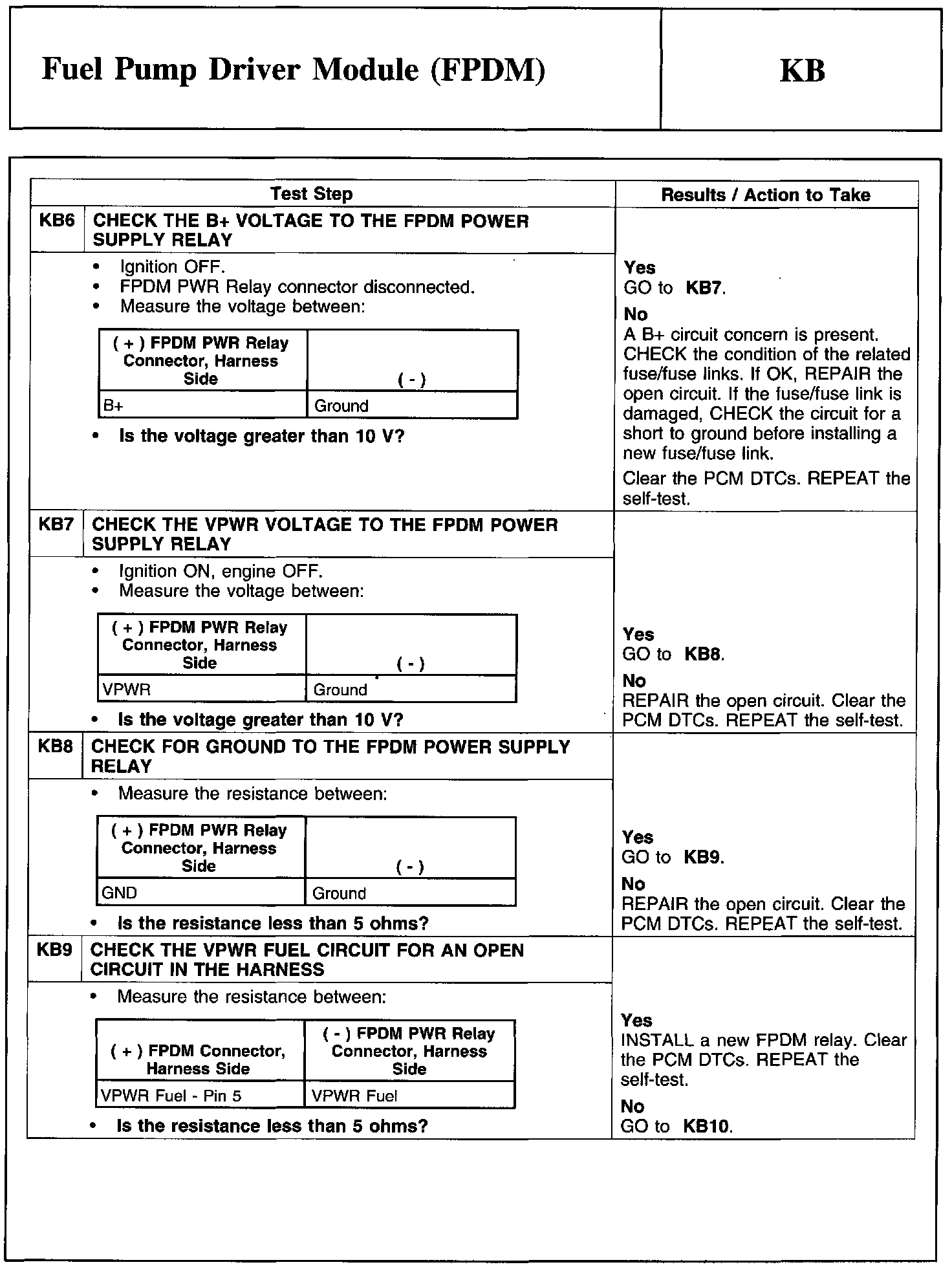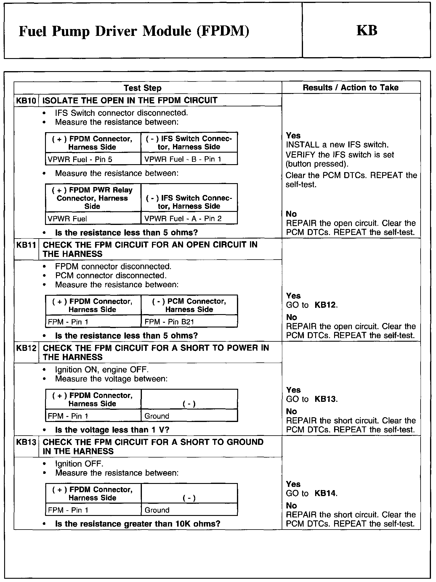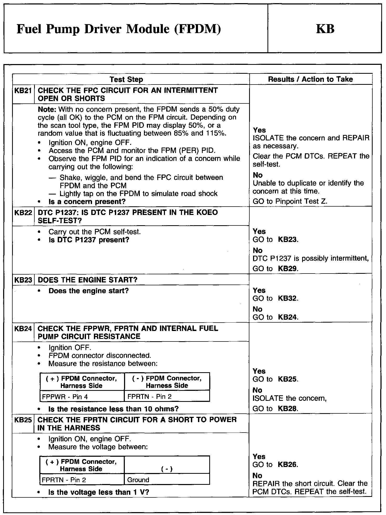 Test KB: Fuel Pump Driver Module (FPDM)