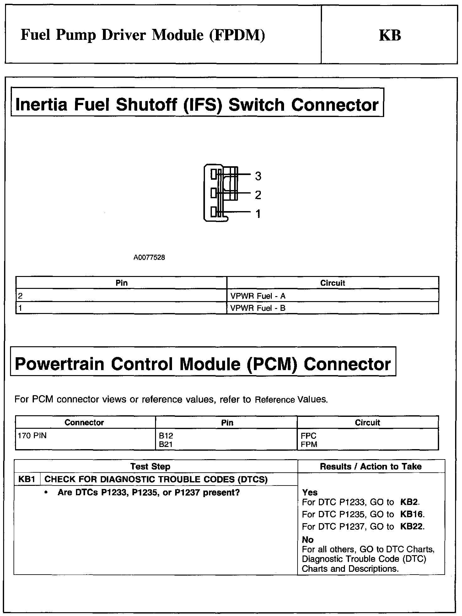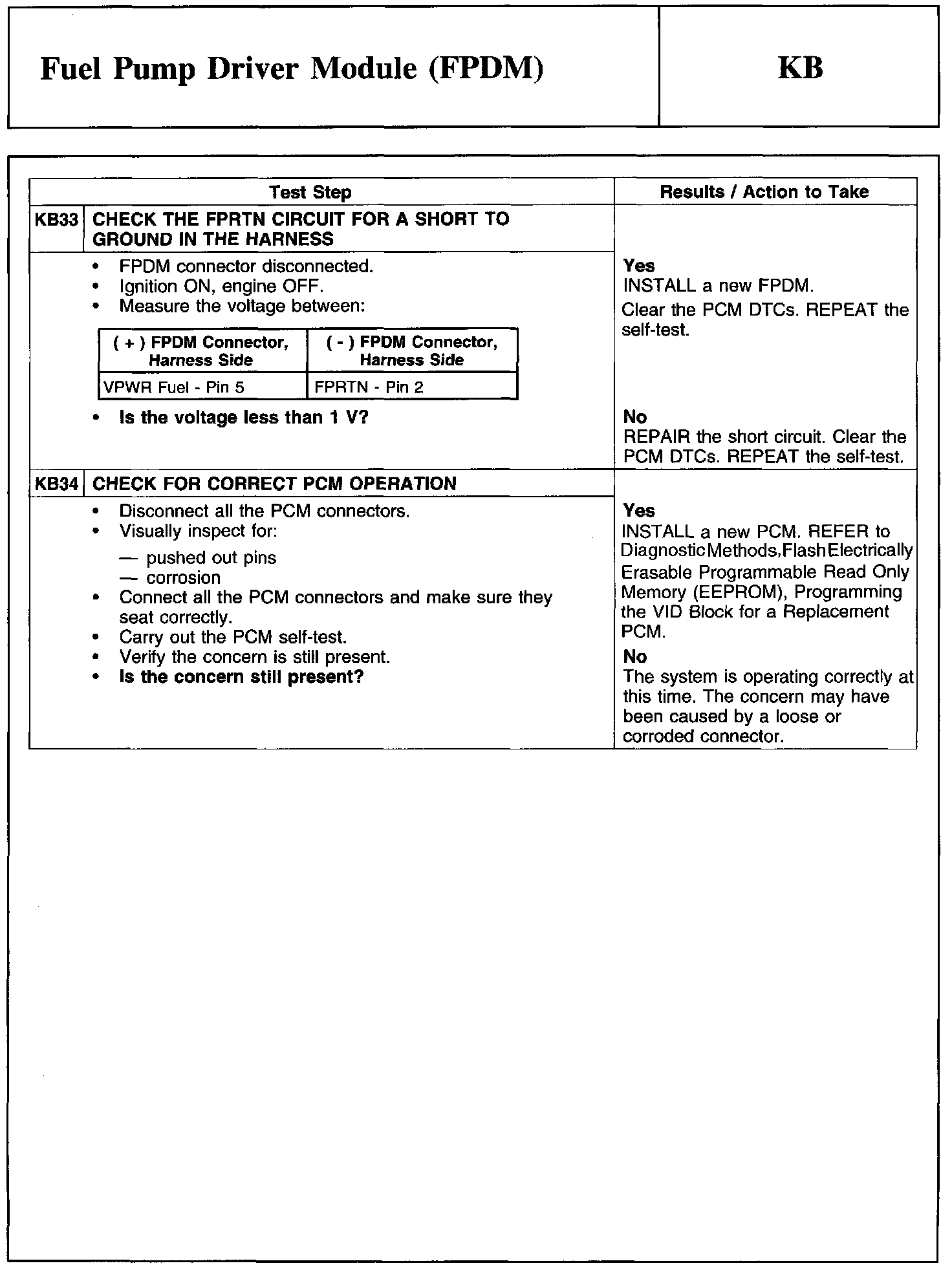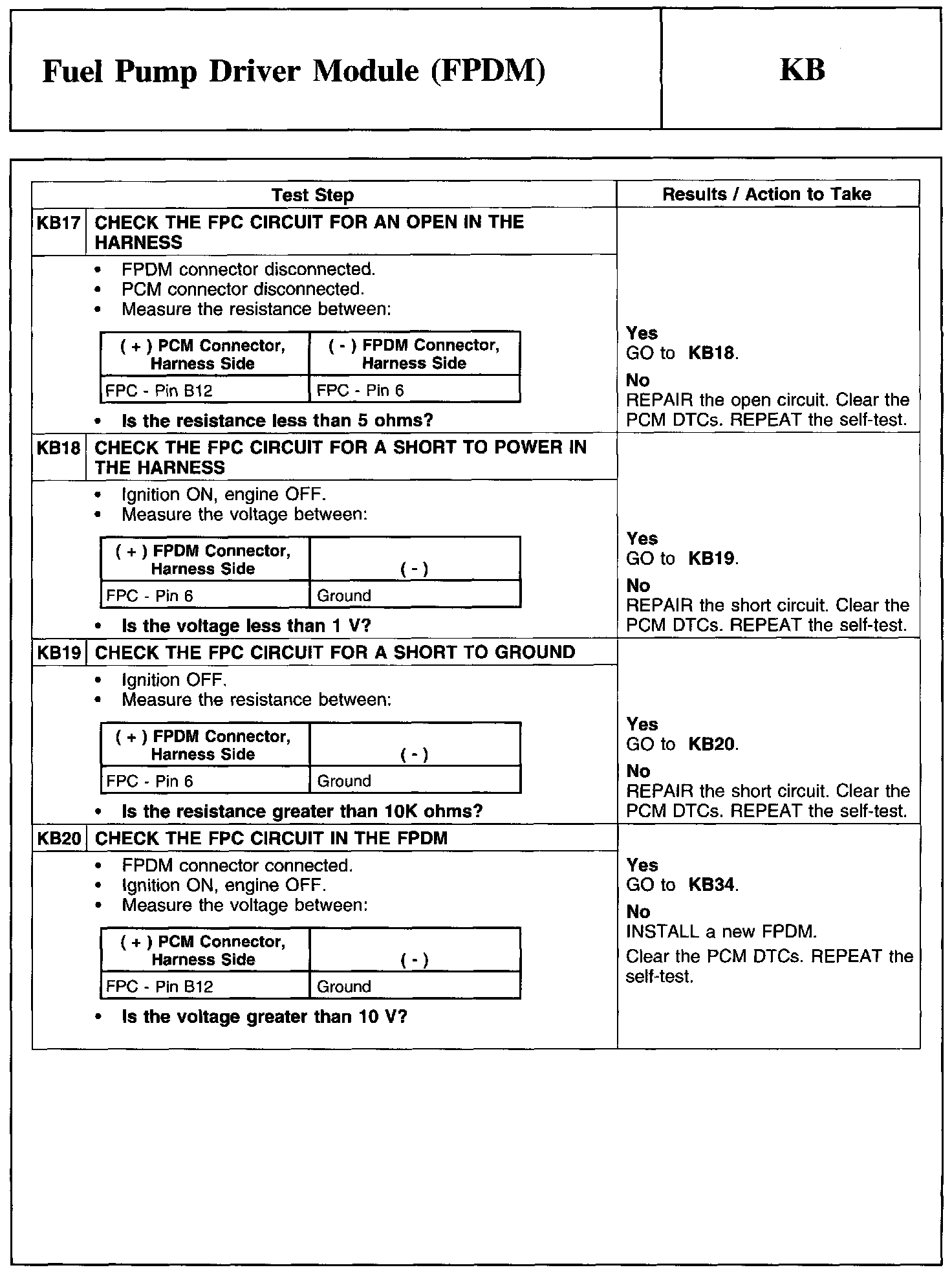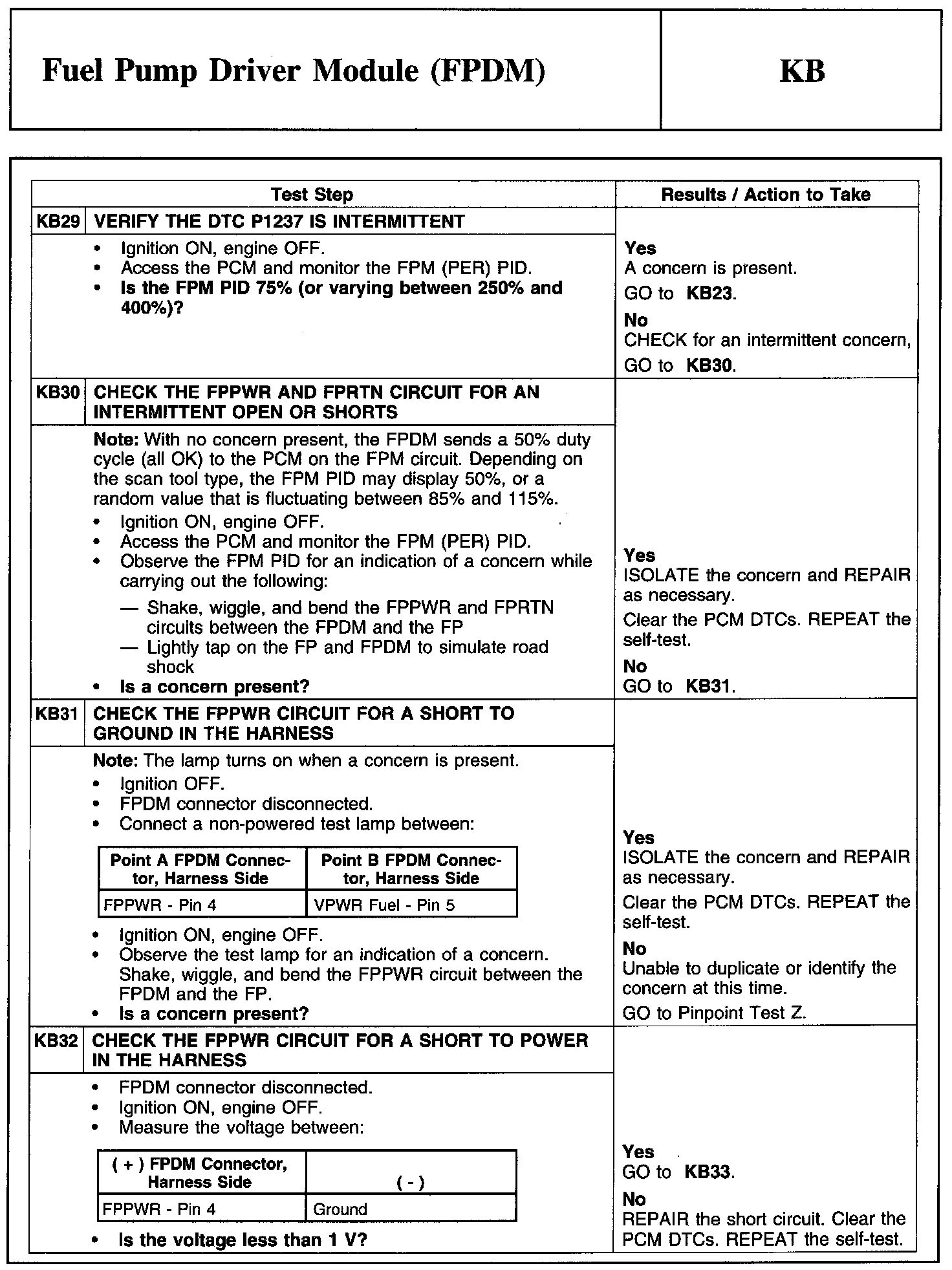 Test KB: Fuel Pump Driver Module (FPDM)
