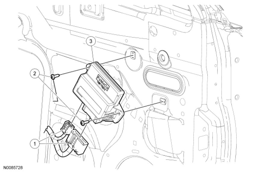 NOTE: Prior to the replacement of the module, it is necessary to upload the module configuration information to the scan tool. This information must be downloaded into the new module after installation. For additional information, refer to Module Configuration Testing and Inspection.
