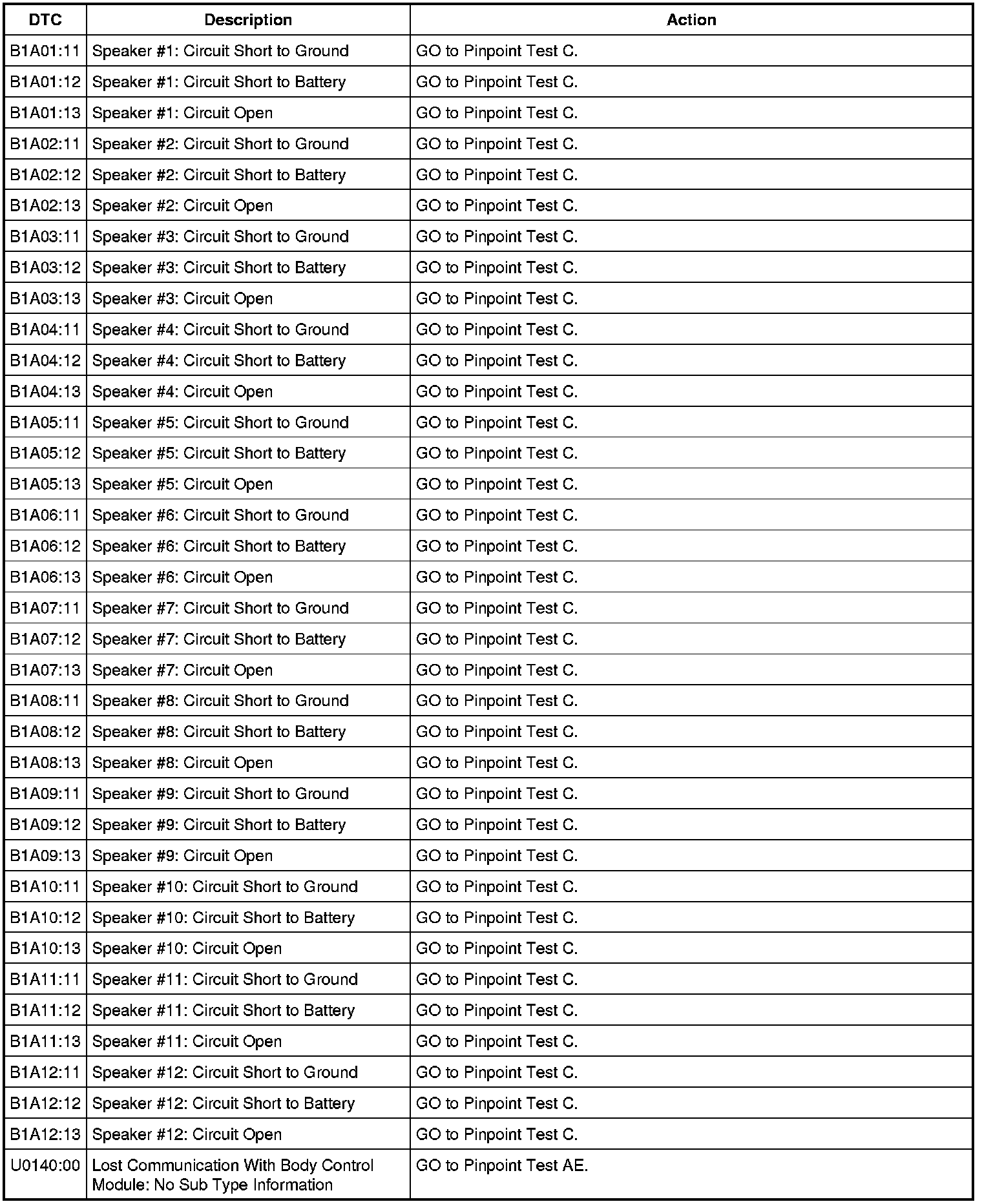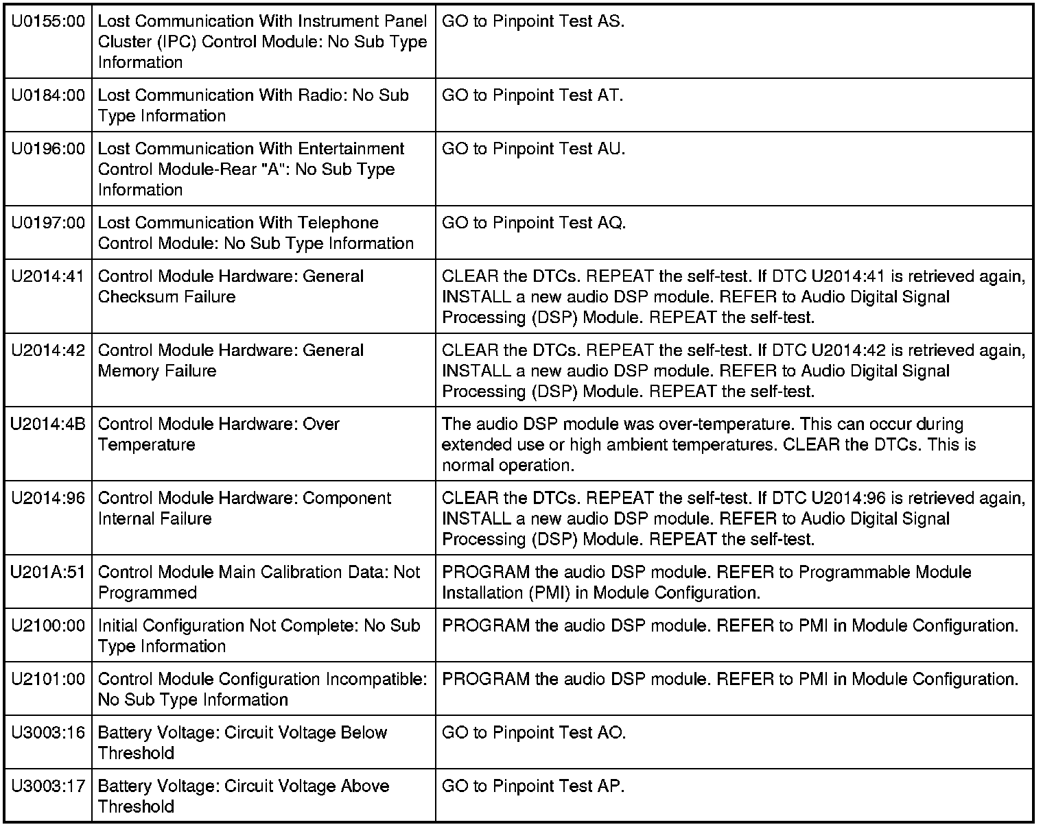NOTE: This module utilizes a 5-character DTC followed by a 2-character failure-type code. The failure-type code provides information about specific fault conditions such as opens or shorts to ground. Continuous memory DTCs have an additional 2-character DTC status code suffix to assist in determining DTC history.