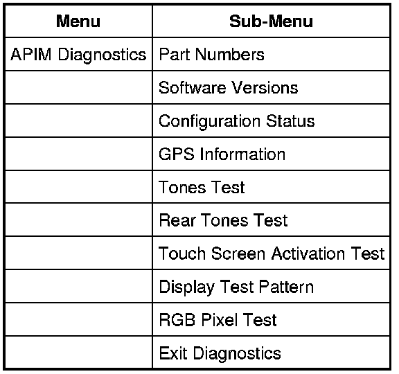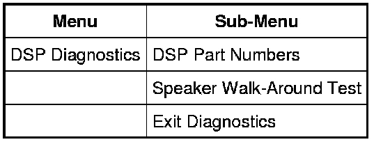 Once the speaker walk-around test is complete, the following information is available through the "BEZEL DIAGNOSTICS" menu using the audio system control buttons: