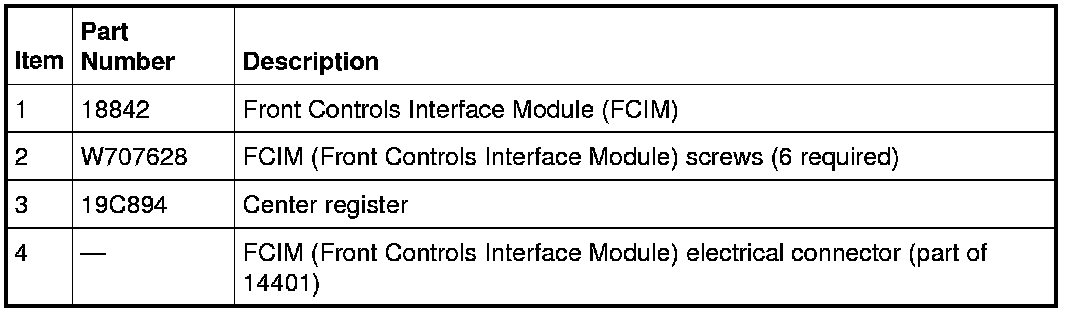 5. Remove the two screws at the lower LH and RH corners of the of the FCIM (Front Controls Interface Module).