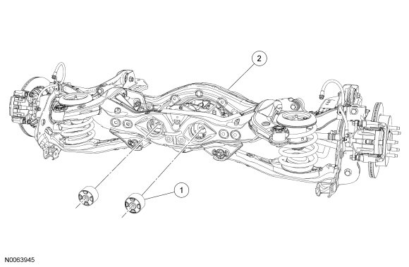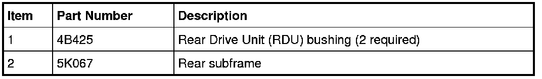 NOTE: For subframe revision 8T43-5K067-BA, the RDU (Rear Drive Unit) bushing must be inset 2 mm (0.08 in).