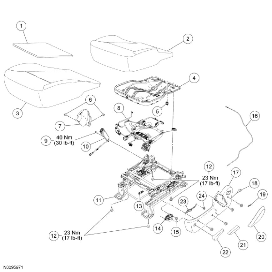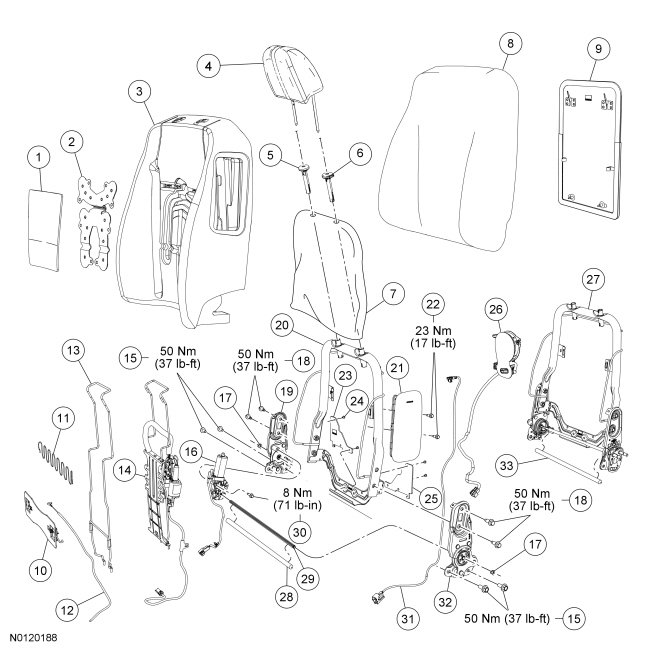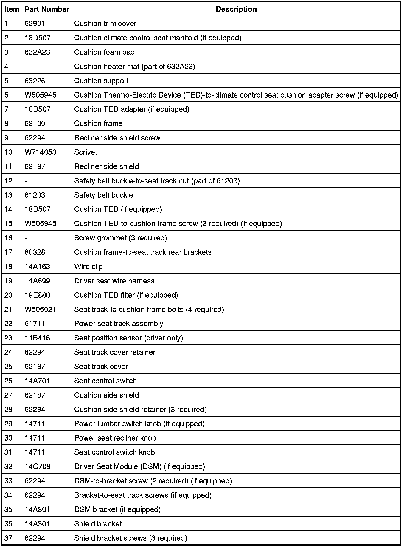 NOTE: Driver seat shown, passenger similar.