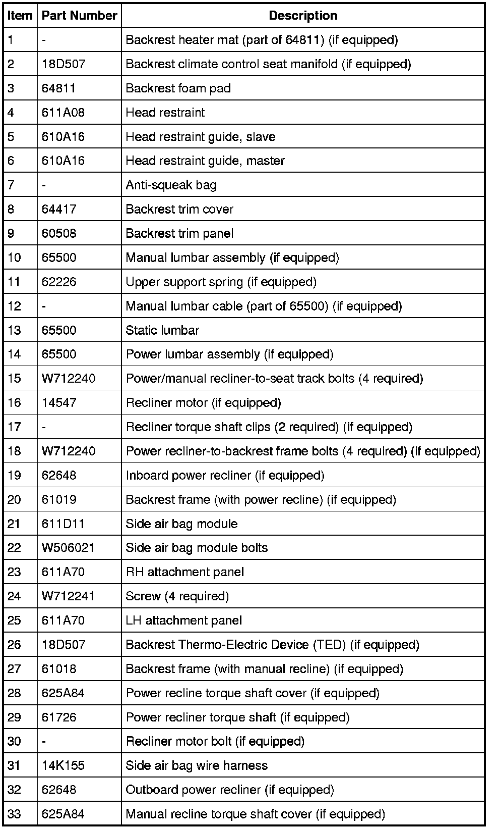 NOTE: Driver backrest shown, passenger similar.