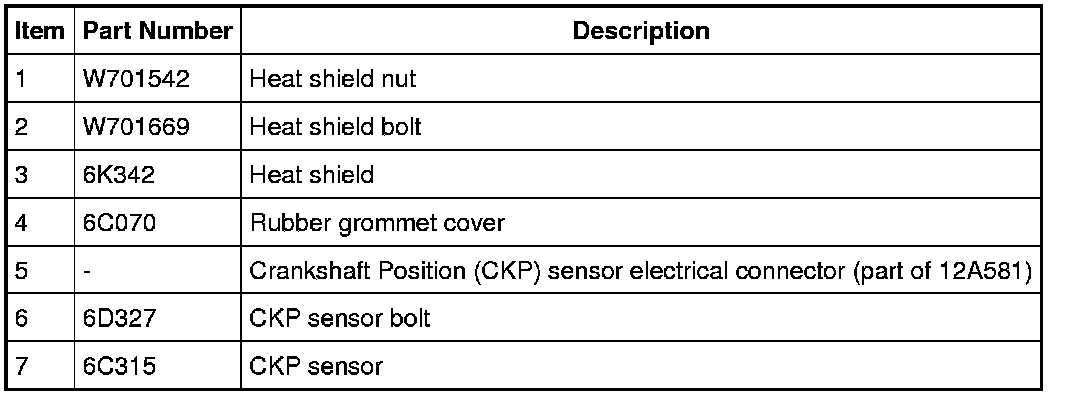 NOTE: The LH catalytic converter must be removed to service the Crankshaft Position (CKP) sensor. For additional information, refer to Exhaust System Service and Repair.
