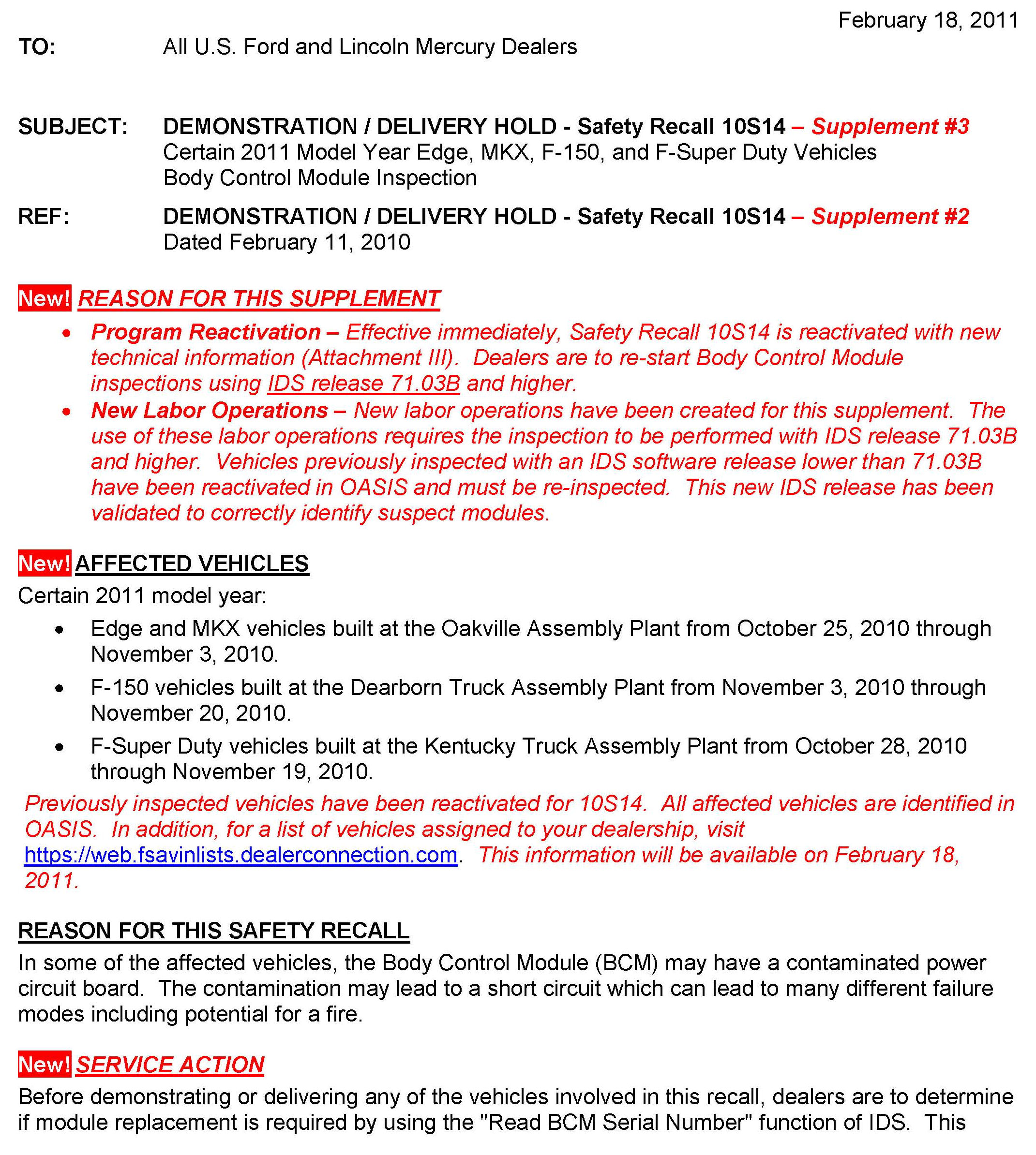 Recall - Body Control Module Replacement