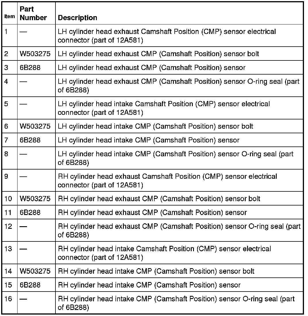 NOTE: The Air Cleaner (ACL) must be removed to service the LH cylinder head CMP (Camshaft Position) sensors. For additional information, refer to Fuel Delivery and Air Induction.