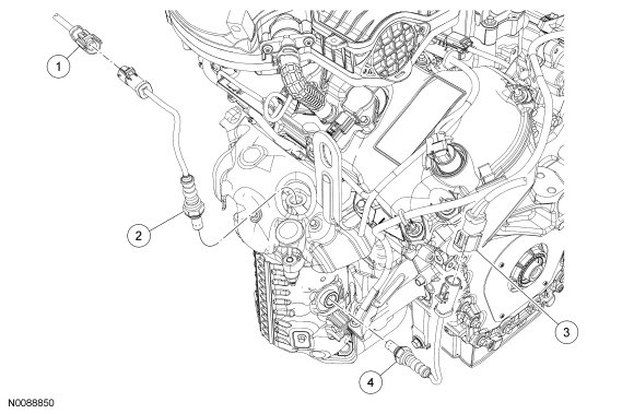 NOTE: To install, tighten the HO2S (Heated Oxygen Sensor) and/or CMS (Catalyst Monitor Sensor) to 48 Nm (35 lb-ft).