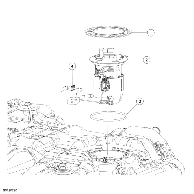 4. NOTE: Clean the Fuel Pump (FP) module connection, coupling, flange surface and the immediate surrounding area of any dirt or foreign material.